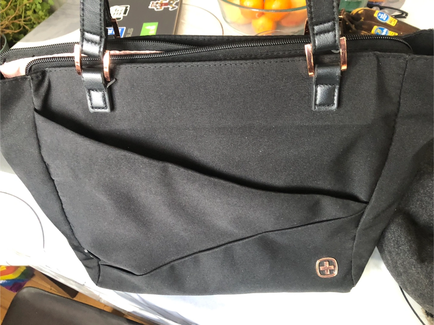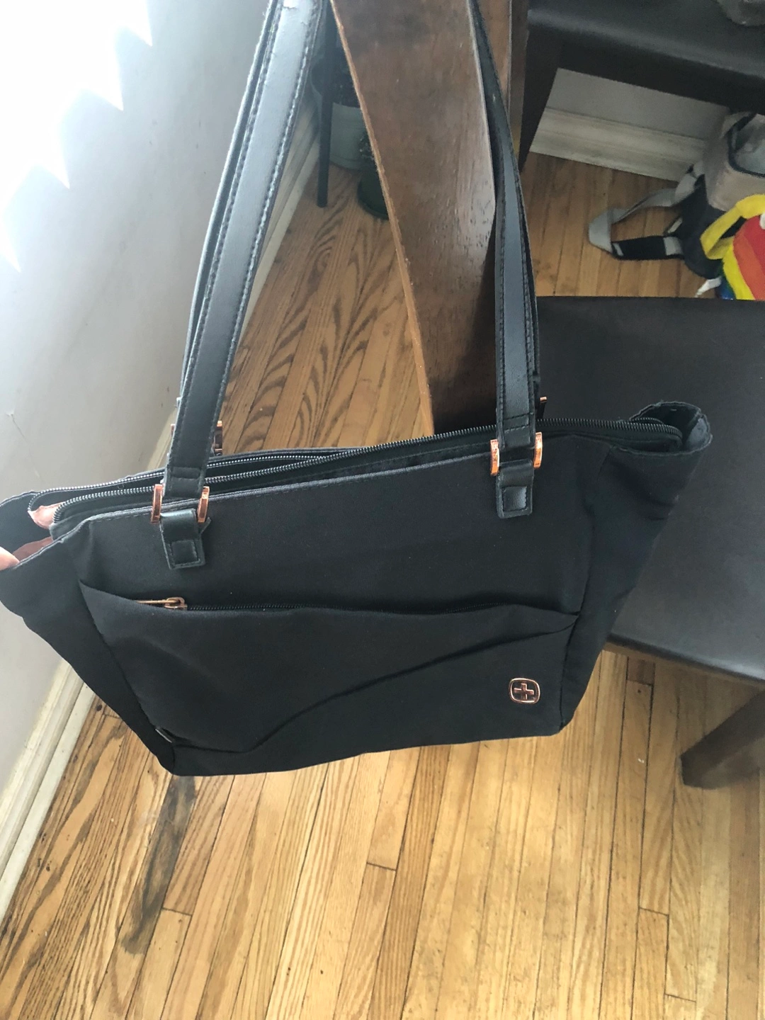Here's a Swiss Gear black tote bag. It's in great condition and ready for a new owner! Perfect for carrying your essentials in style