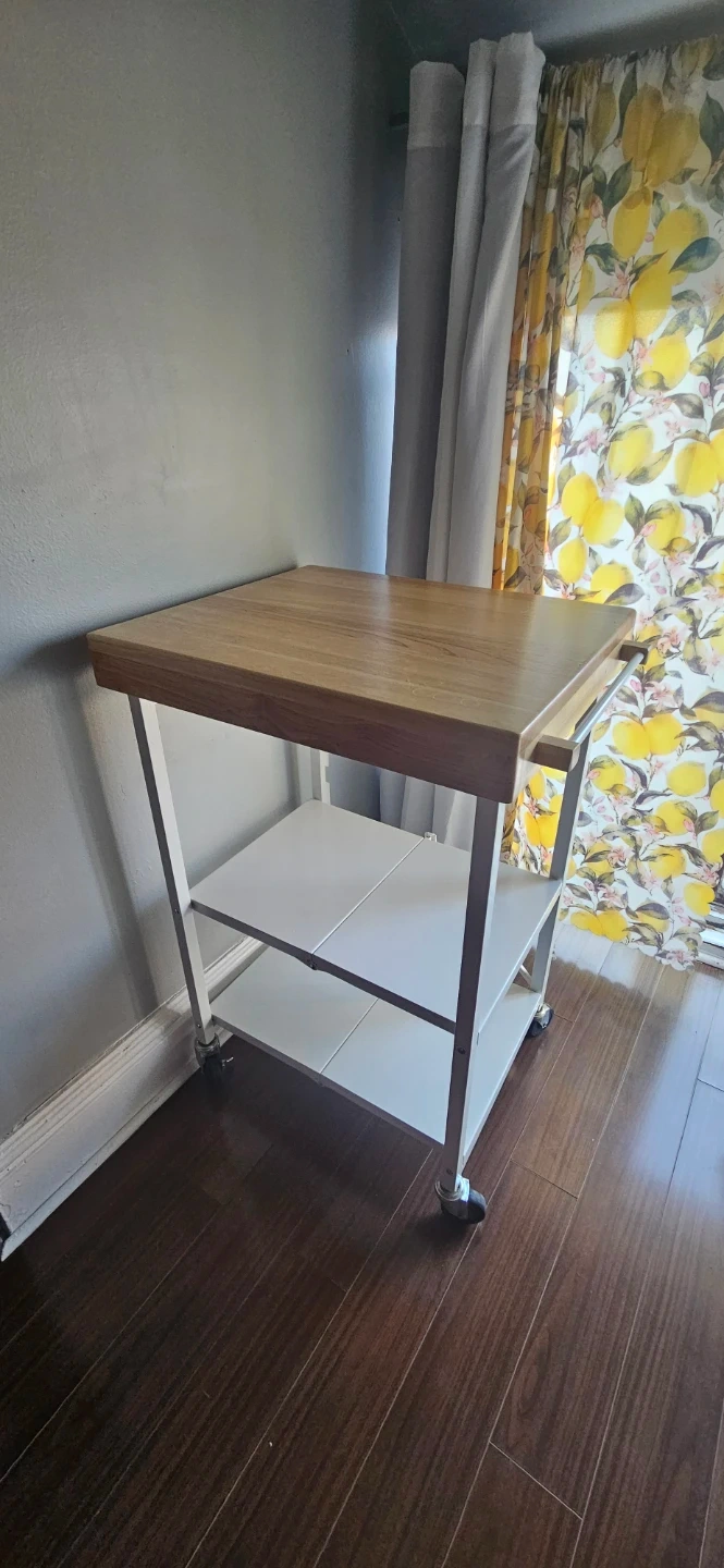 Minor cuts and scratches but overall great condition. Great for added counter space or prep area!