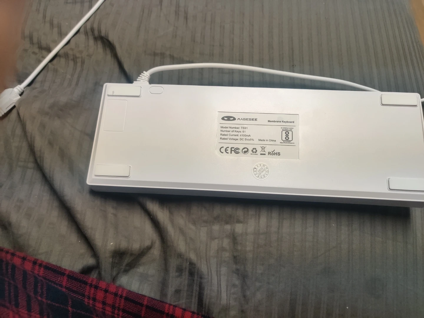 Selling a Kageebee TS91 membrane keyboard in white! The model number is TS91. It is rated current at 410mA and rated voltage at DC 5V=.
