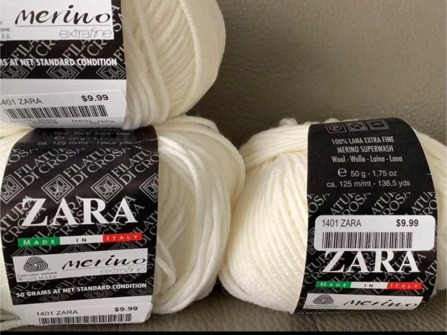- Zara Merino: Extra fine, 100% wool, 50g