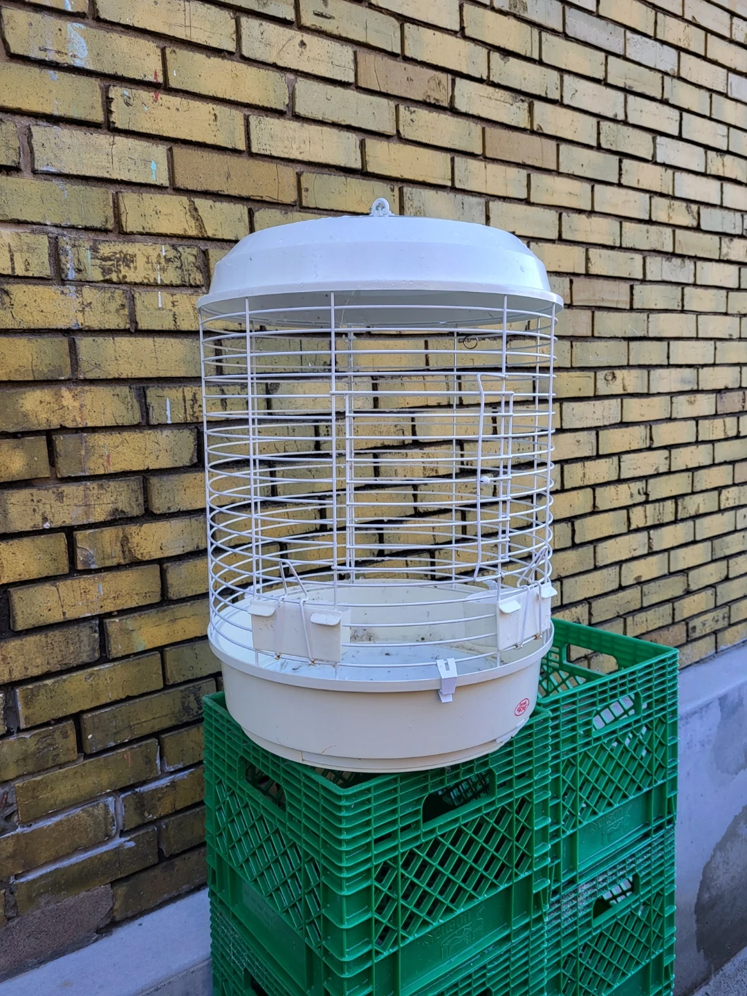 Selling a white bird cage. It's in great condition and ready for a new feathered friend! Perfect for small birds