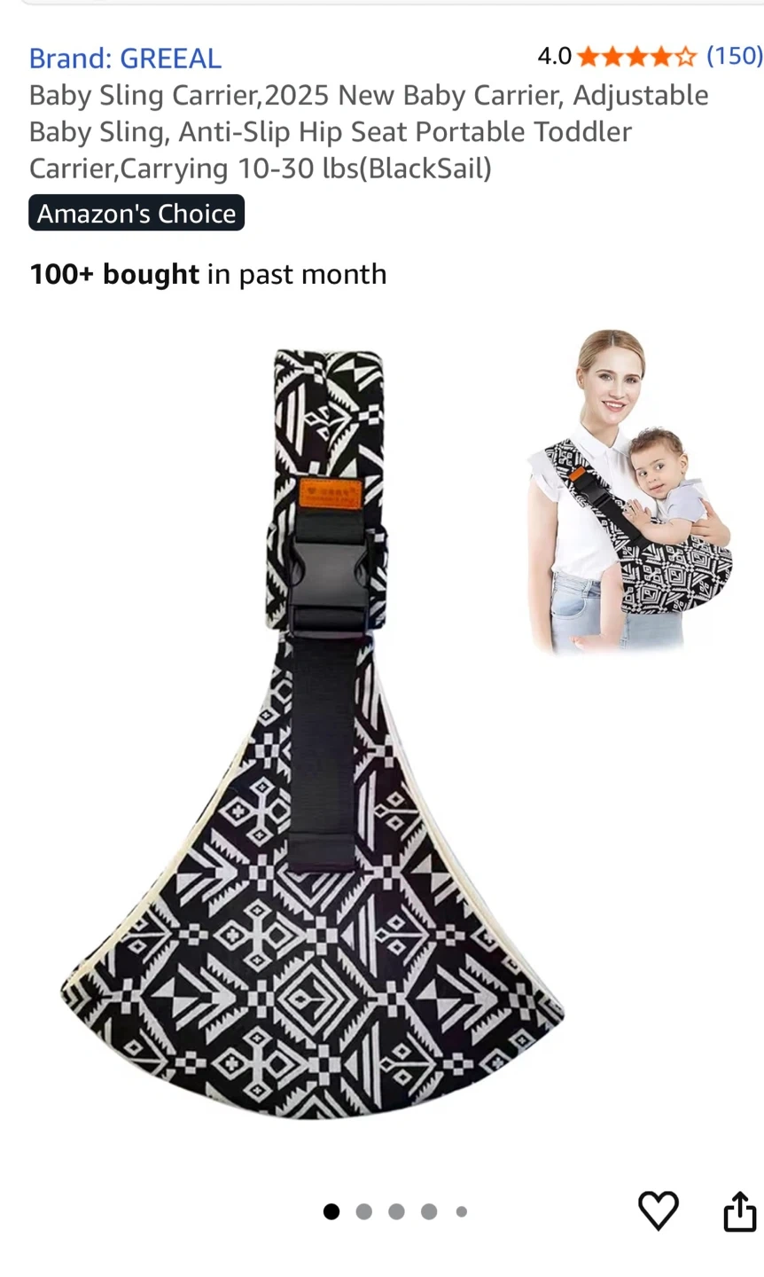 This GREEAL baby sling carrier in the Black Sail colour is perfect for carrying your little one! It's designed to be easy to wear and adjustable, suitable for babies weighing 10-30 lbs. The carrier features front and rear adjustable buckles for a comfortable fit for both you and your baby