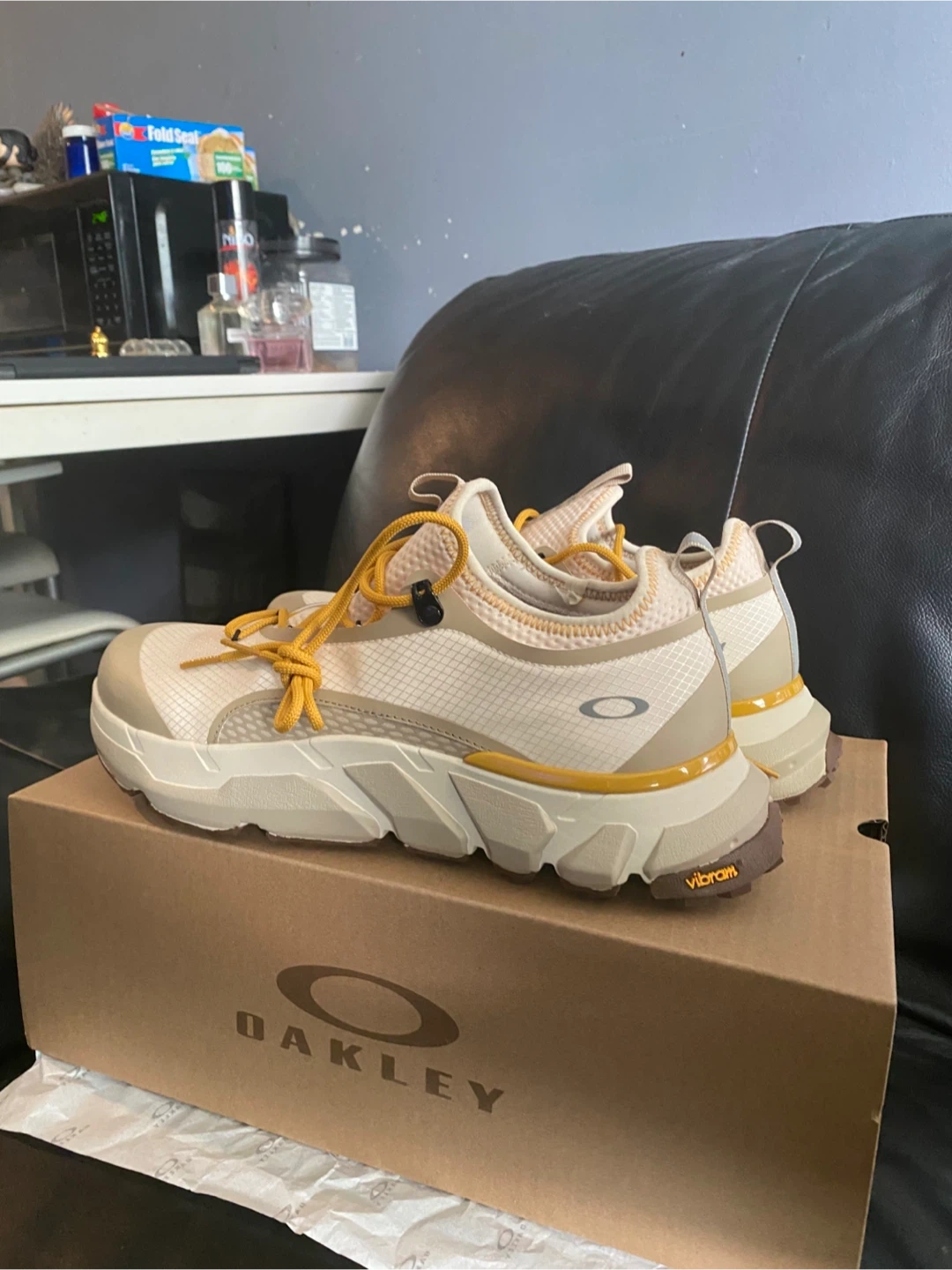 Selling a pair of Oakley Light Shield sneakers in a white, grey, and yellow colourway. These are in great condition and come with the original box. The soles are Vibram XS Trek. These sneakers retail for $259.