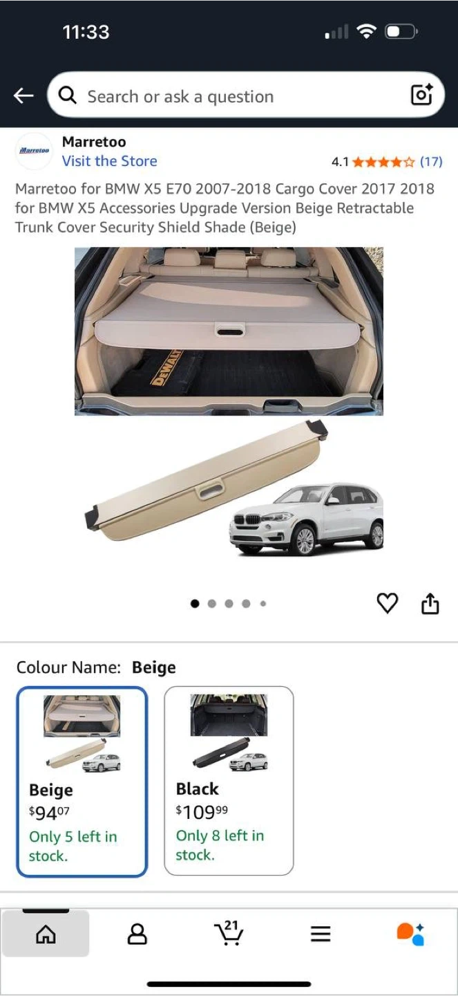 Marretoo Cargo Cover for BMW X5 E70 (2007–2018) – Beige | NEW