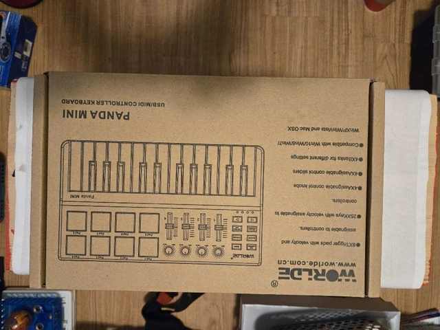 This is a Worlde Panda Mini USB MIDI controller keyboard that is in new condition. It features 25 keys with velocity, 8 trigger pads with velocity, 4 assignable control knobs, and 4 banks for different settings, compatible with Win/WinXP/Vista/Win7 and Mac OSX. Looking at similar MIDI keyboards, I think $80 is a fair price. If the ad is still up, the item is available!