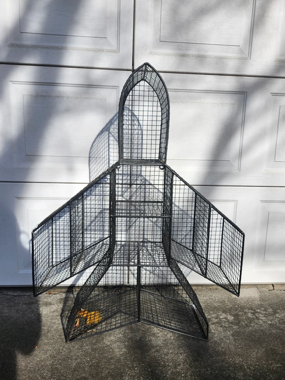 Selling a unique wire rocket bookshelf! It's a cool statement piece and great for adding some fun to your space. Perfect for displaying books, plants, or other decorative items