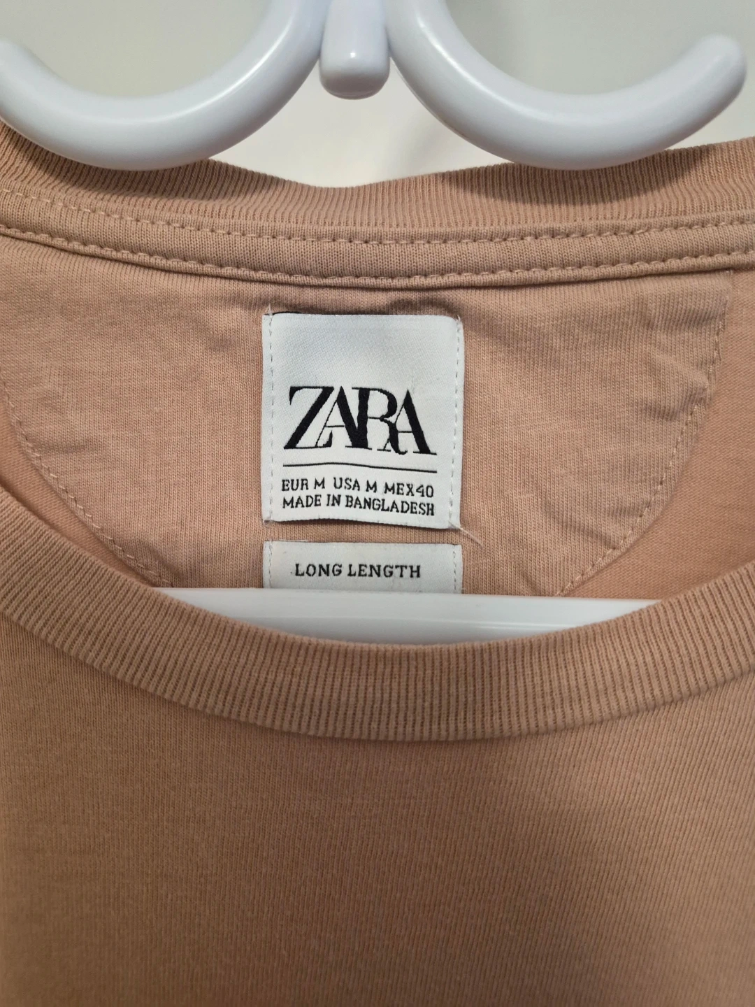 Selling a Zara long length T-shirt in size M. It's a nice, neutral colour and in great condition. Perfect for everyday wear!
