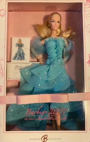 Introducing the highly sought after Barbie Collector Pink Label 2007 #K8667. This 12-inch fashion doll features blonde curly or straight hair (varies), blue eyes, and a light complexion. Made from high-quality vinyl, plastic, and fabric materials, this original Barbie comes in its original (unopened) packaging and is perfect for all occasions.