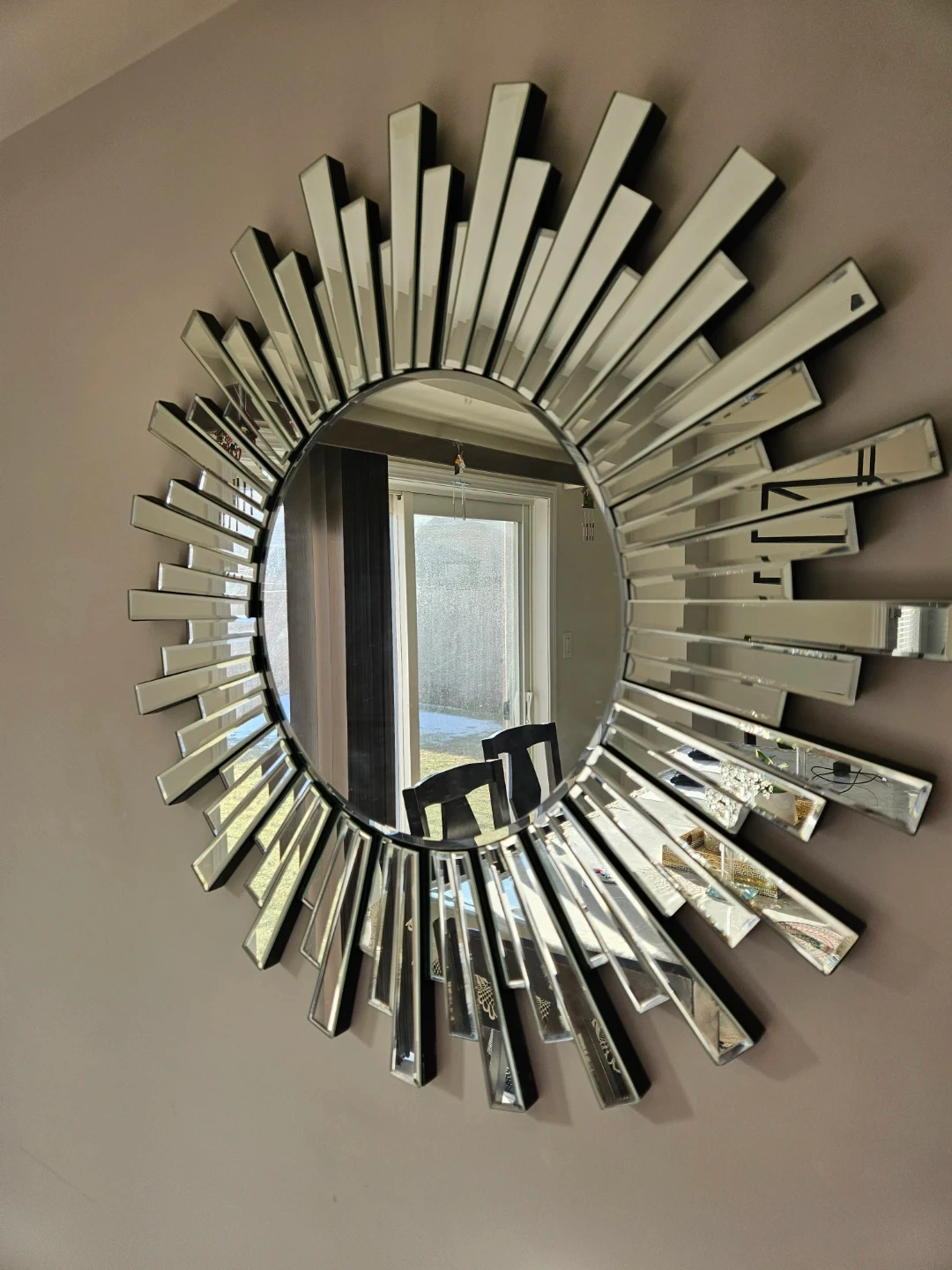 Add a touch of sparkle to your home with this starburst mirror! It's in great shape and ready to brighten up any room. Perfect as a statement piece or part of a gallery wall