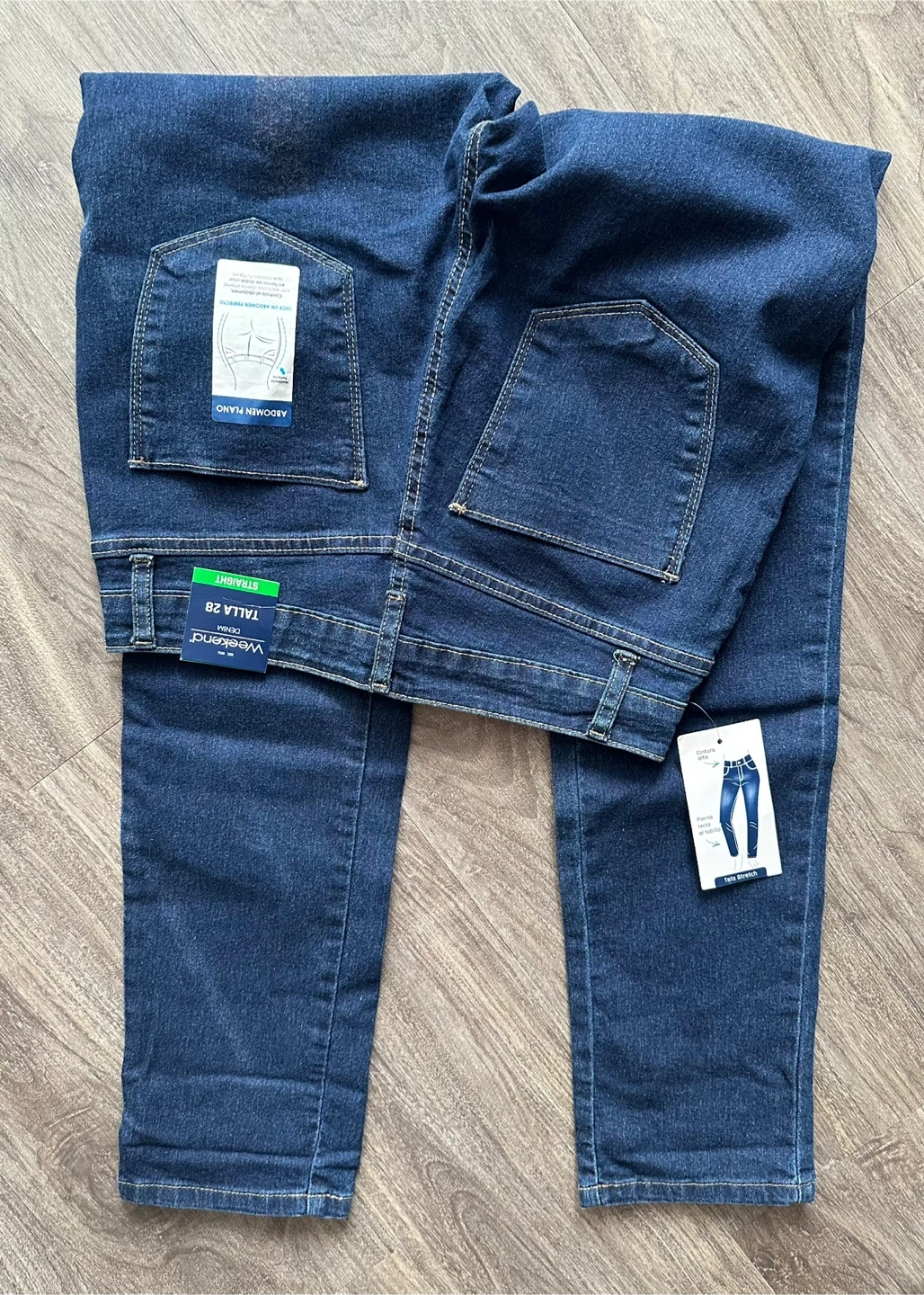 Weekend Denim straight jeans in size 28. These jeans are a dark wash and have a classic, straight leg fit. They appear to be in new condition with tags still attached!