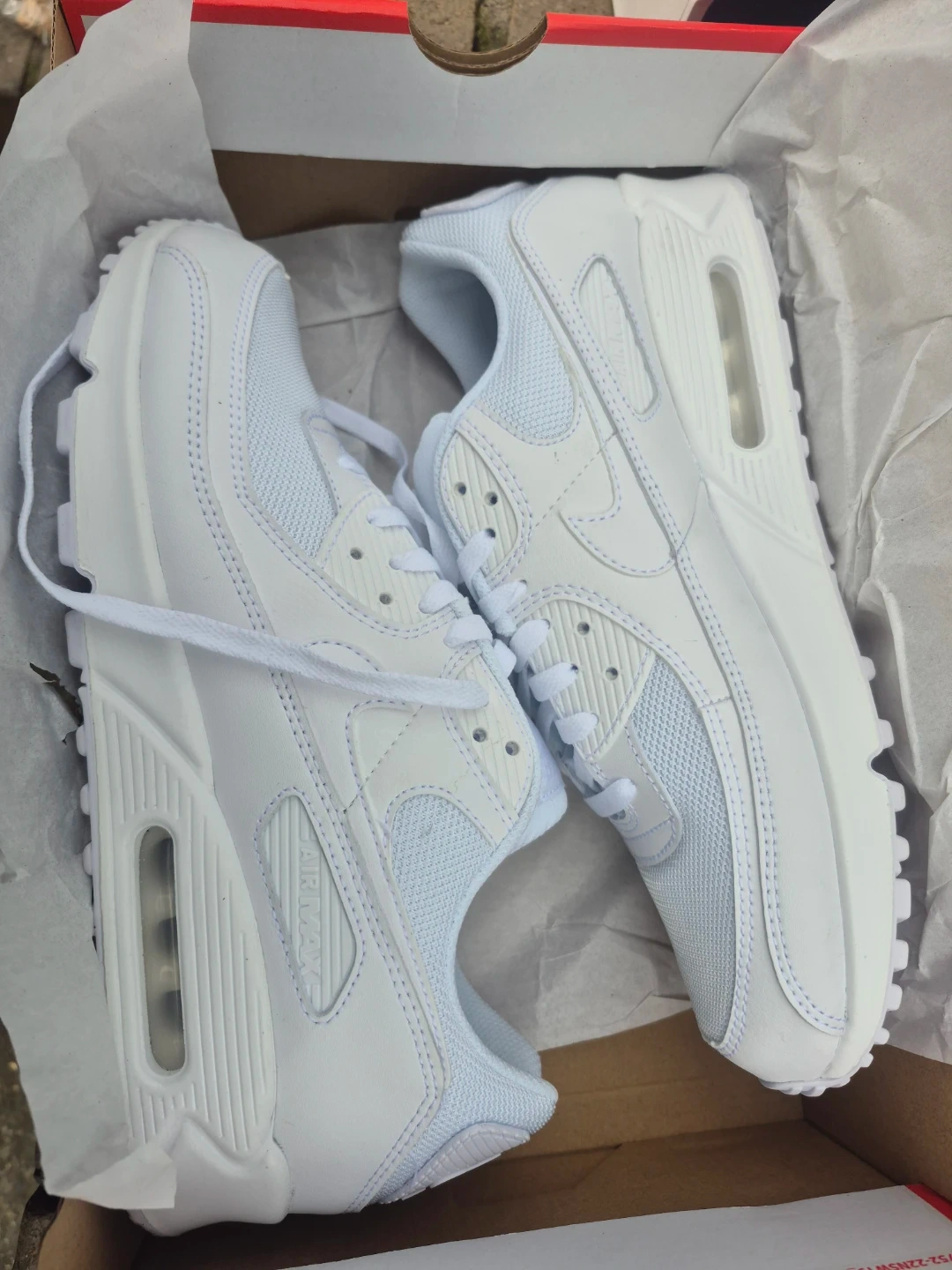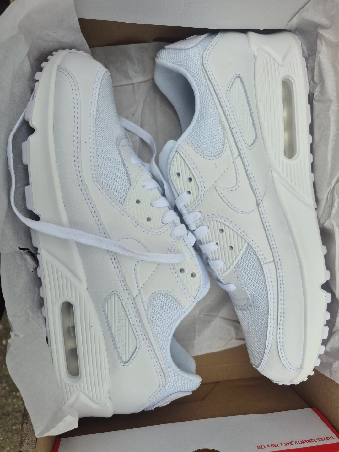 Selling a pair of brand new Nike Air Max 90 sneakers in a clean triple white colourway! The shoes are in perfect condition and come with the original box. A classic and versatile style that goes with everything