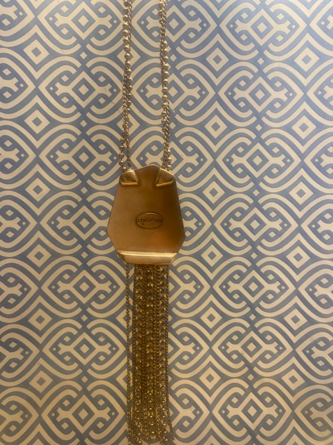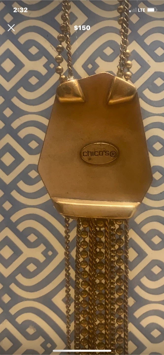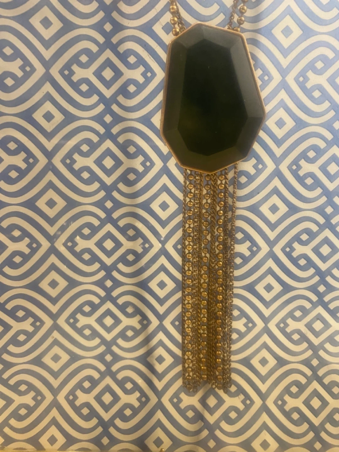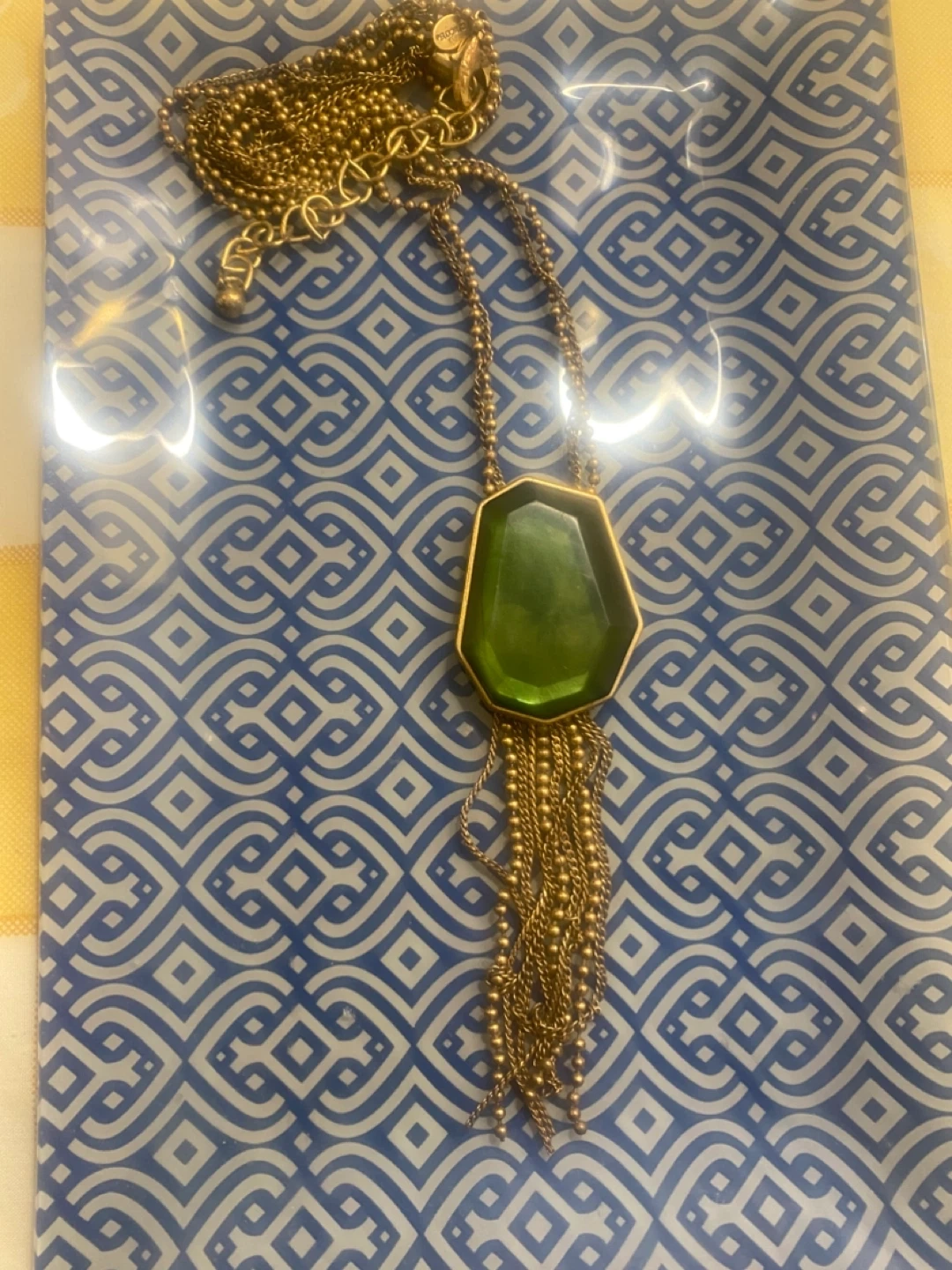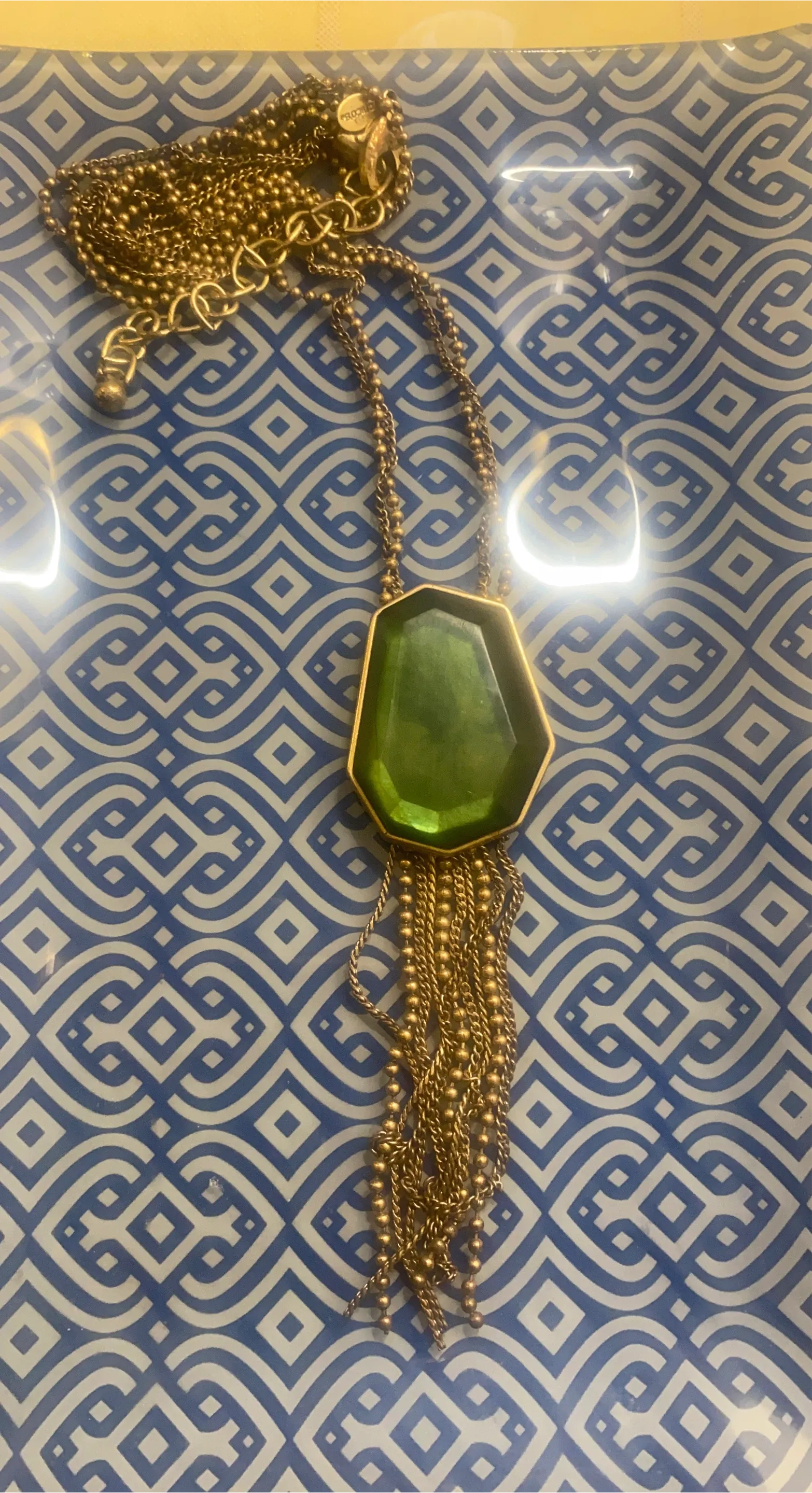 Selling a Rococo pendant necklace with a green stone and gold-tone chain. It's a beautiful piece to add to your jewelry collection! @casa_S_Decor