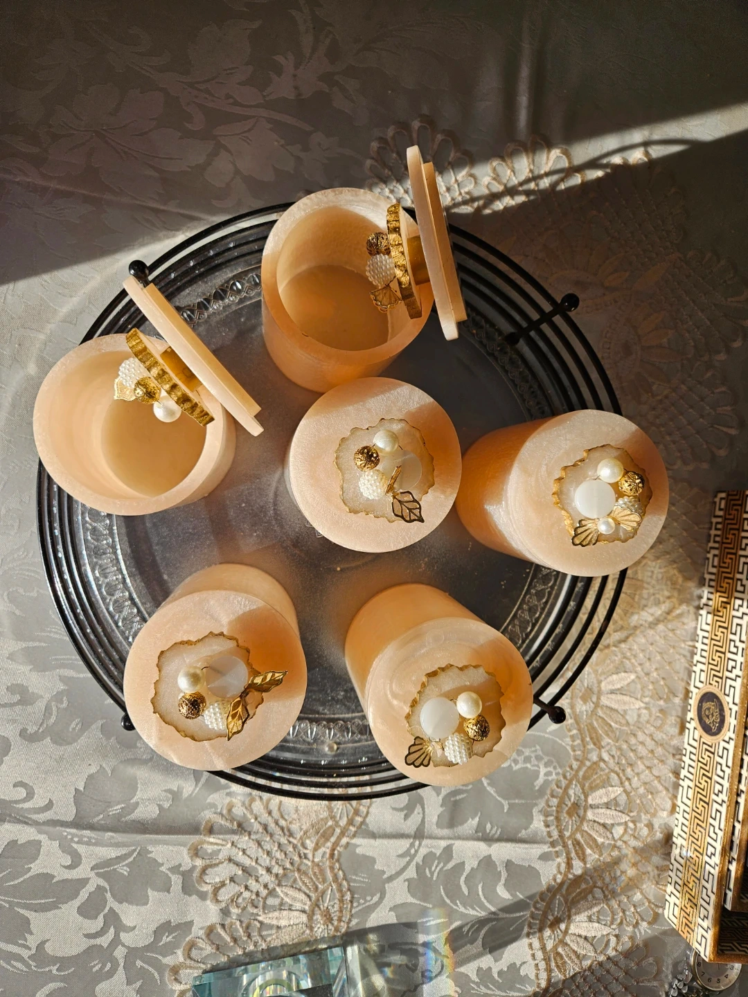 These decorative trinket boxes are perfect for adding a touch of elegance to any space. They feature a unique design with pearl and gold-tone accents. Ideal for storing small items or simply displaying as decorative pieces