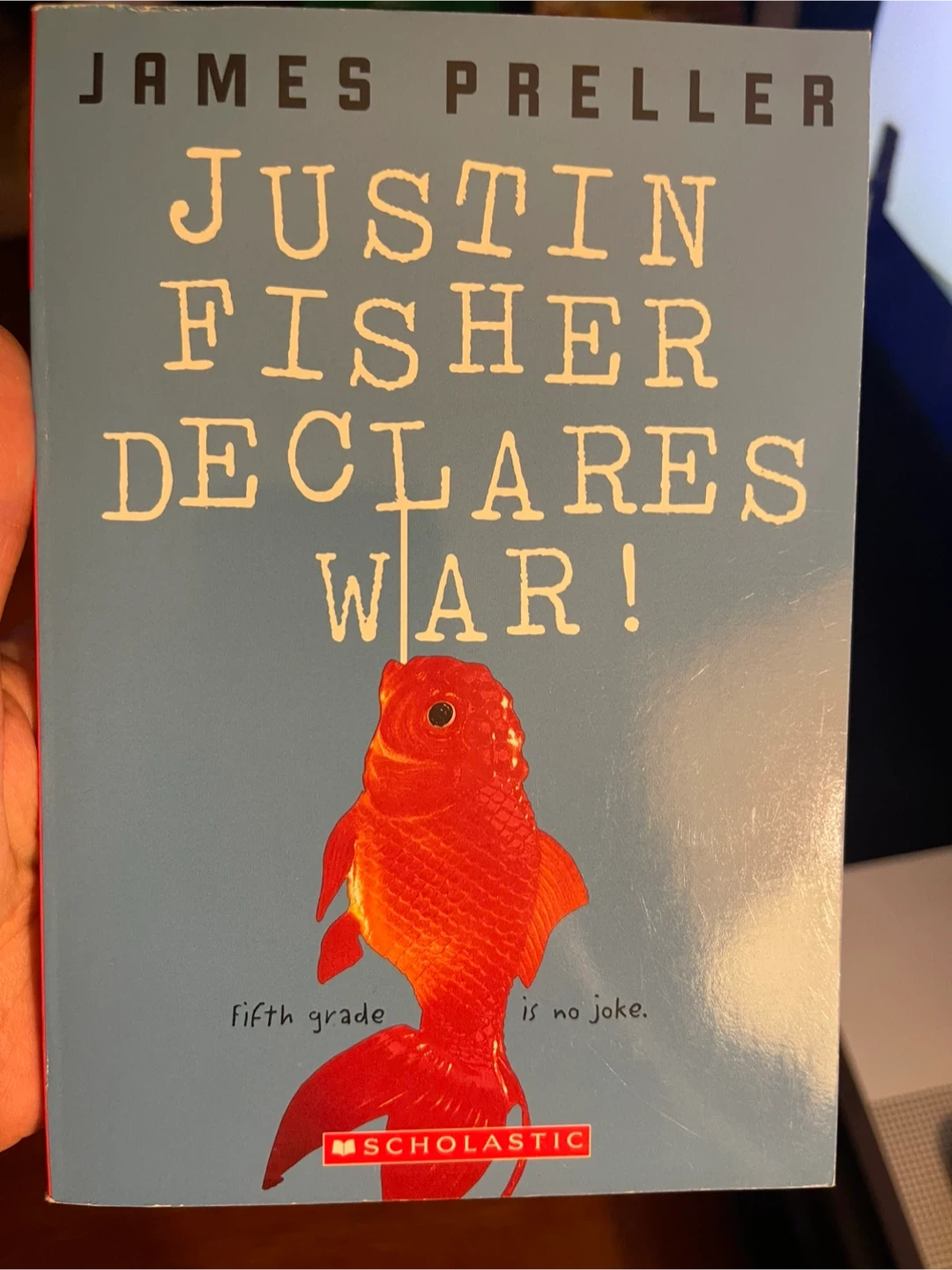 Selling a copy of "Justin Fisher Declares War!" by James Preller. It's a Scholastic book that looks to be in great shape. Perfect for a young reader!