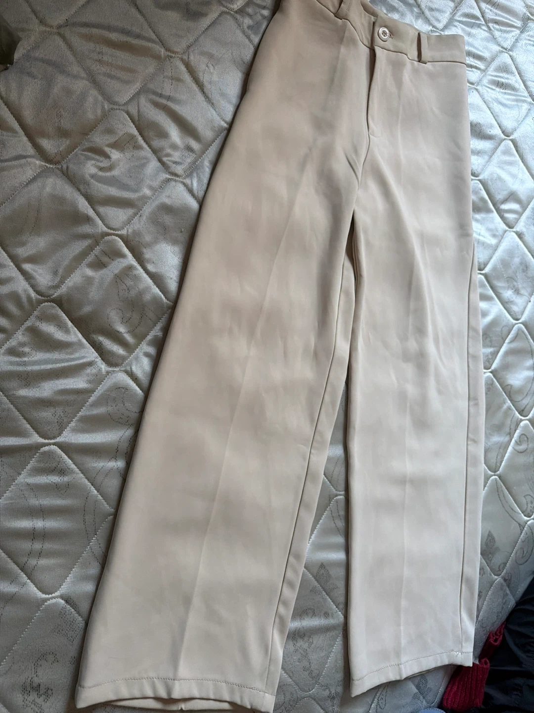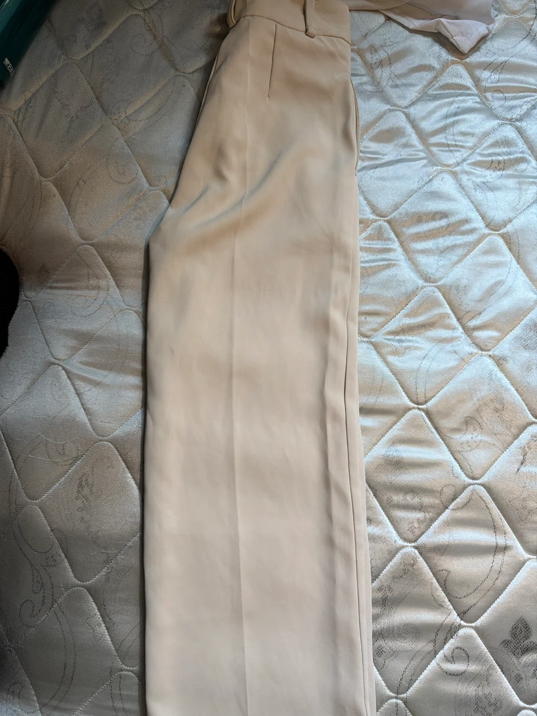 Selling a pair of beige wide leg semiformal pants.They're in great shape and ready for a new wardrobe! The colour is a versatile neutral, perfect for dressing up or down.size 26-27