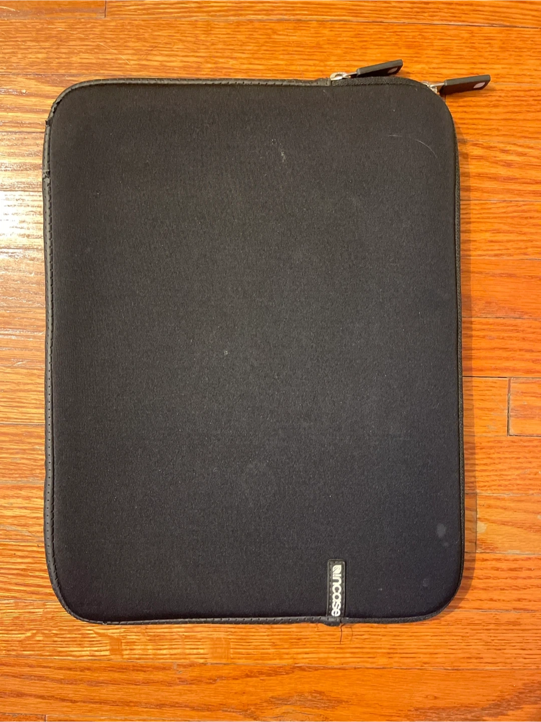 Selling a black laptop sleeve from Incase. It's in good condition and perfect for protecting your laptop on the go. It has a zipper closure to keep your laptop secure