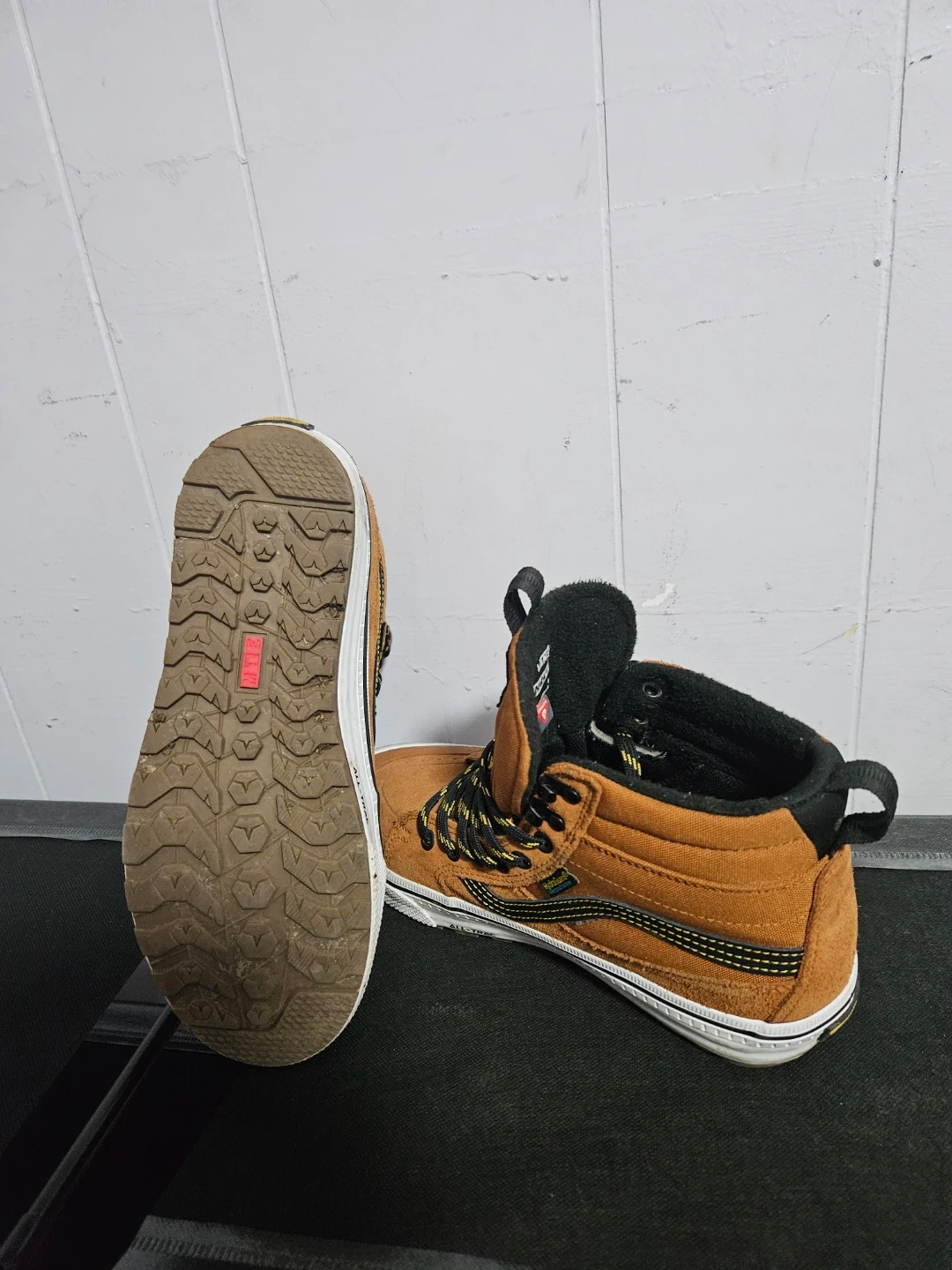 Selling a pair of Vans Sk8-Hi MTE waterproof boots in a nice brown colour. They're a size 8.5 men's & 10 in womens. Perfect for keeping your feet warm in the winter with prima loft insulation. With hydro guard your feet will stay dry... asking 20$