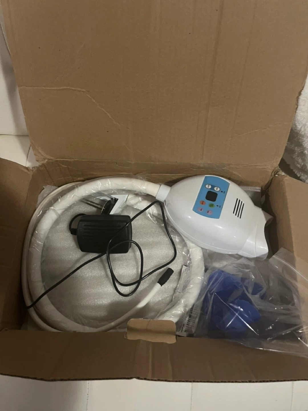 Selling a teeth whitening machine that comes with all the accessories. The machine is in great condition and includes the power adapter and other components shown in the photos. It comes with the original box as well!
