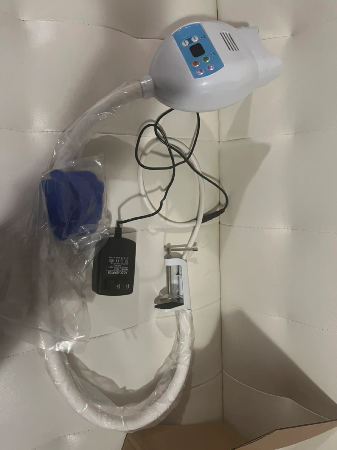 Selling a teeth whitening machine that comes with all the accessories. The machine is in great condition and includes the power adapter and other components shown in the photos. It comes with the original box as well!