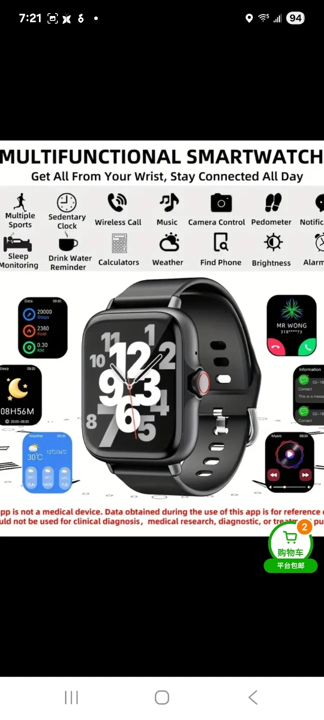Selling a very new smartwatch, still in its original box! It comes with all the components, including the charger and user manual. This multifunctional smartwatch has features like wireless call, music, camera control, and multiple sports modes. The dimensions are 3.7cm x 24.8cm. Get all from your wrist and stay connected all day!