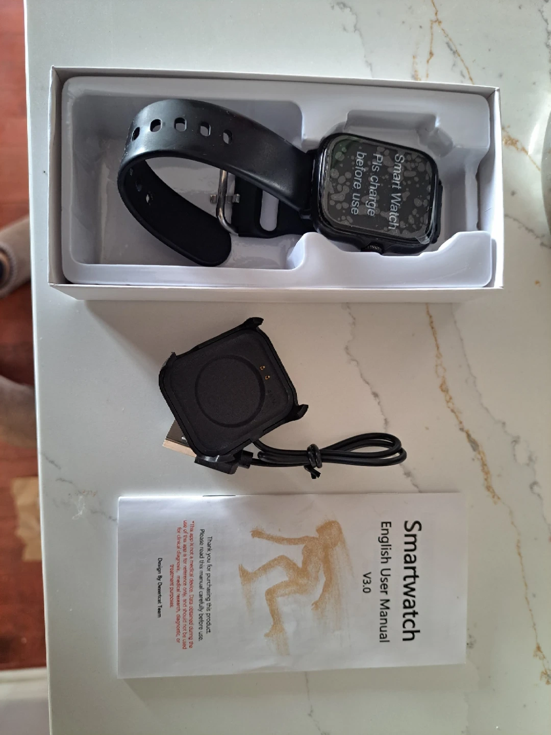 Selling a very new smartwatch, still in its original box! It comes with all the components, including the charger and user manual. This multifunctional smartwatch has features like wireless call, music, camera control, and multiple sports modes. The dimensions are 3.7cm x 24.8cm. Get all from your wrist and stay connected all day!