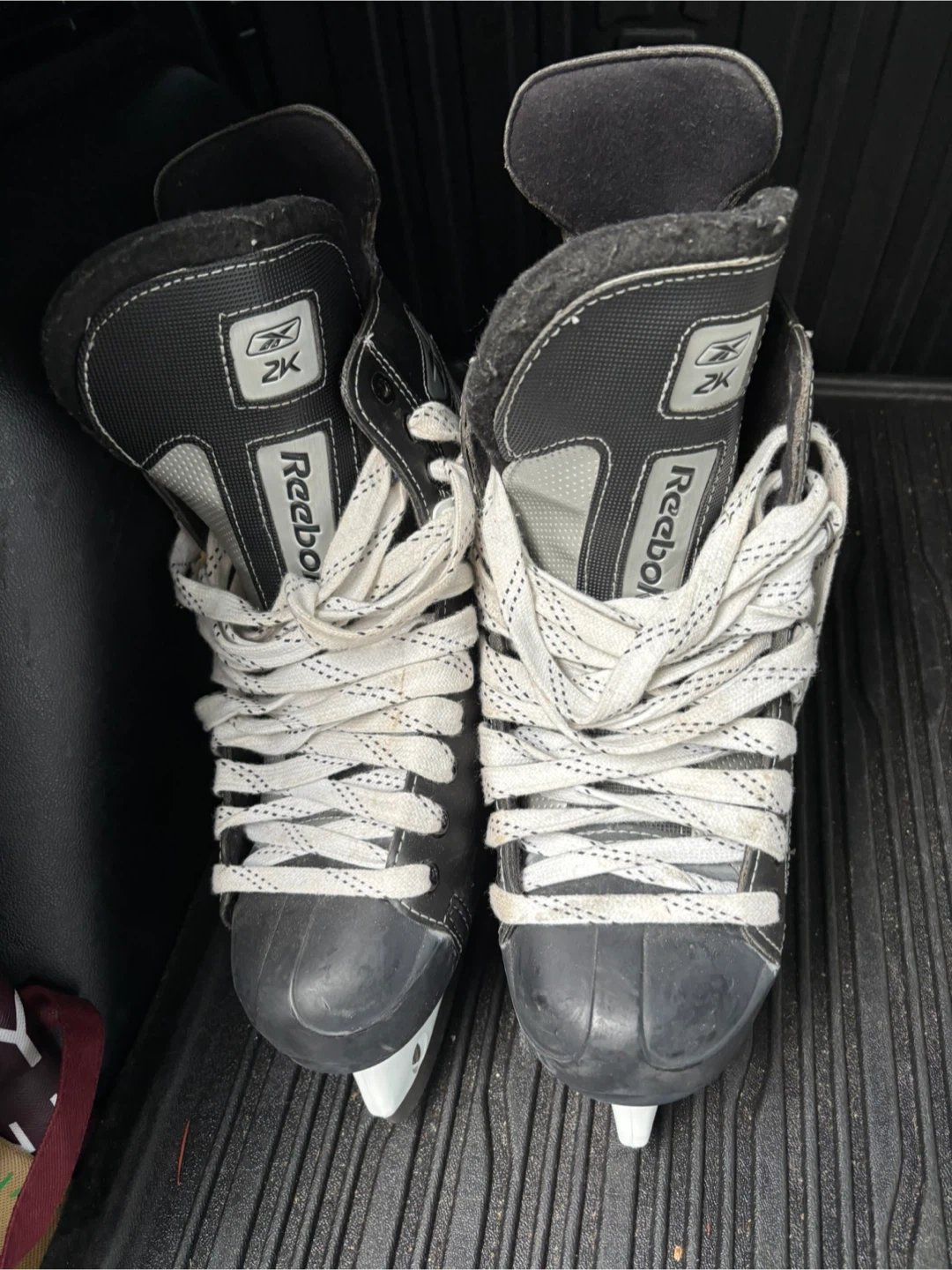 Selling a pair of Reebok 2K ice hockey skates in size 9. They're in good condition and ready for the ice!