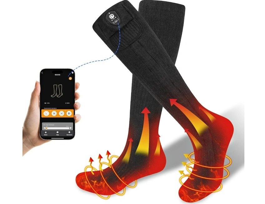 SAVIOR HEAT Heated Socks upgraded it with app control, you can not only adjusted the heat setting with the button, but also can make adjustments without having to remove your shoes or stop what you are doing through the Mobile APP" SAVIOR HEAT". The EH far infrared heating elements are thoughtfully positioned above and below the forefoot and toe area providing all-round warmth for your cold feet.
