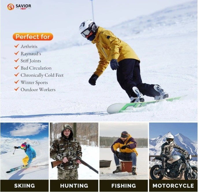 The unisex electric heated socks with app are suitable for all kinds of outdoor sports, such as skiing, snowboarding, hiking, hunting, fishing, cycling, skating, motorcycling, equestrian, etc. The heated socks are also good for cold feet with poor blood circulation.
