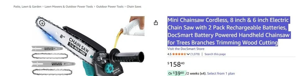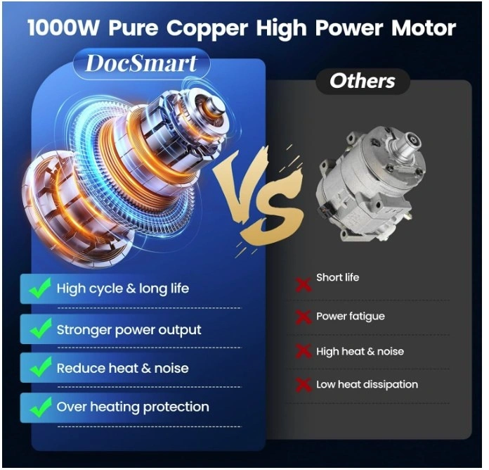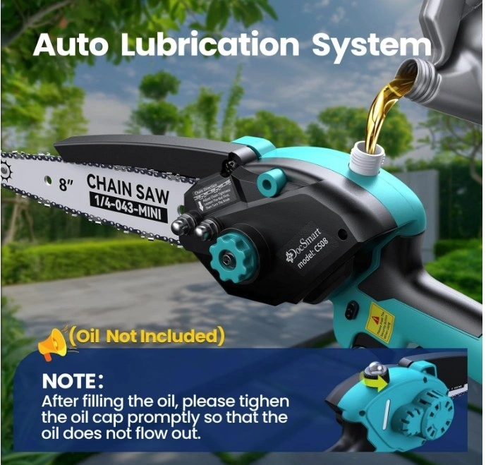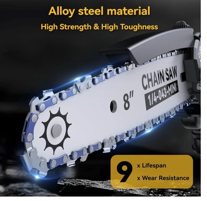 High-performance 1000W pure copper motor drives the mini chainsaw at 26ft/s for faster, more efficient cuts. It cuts 6-inch branches in 8s (actual time may vary depending on the size and hardness of the wood). Thanks to the deep quenching process, it ensures smooth cutting.