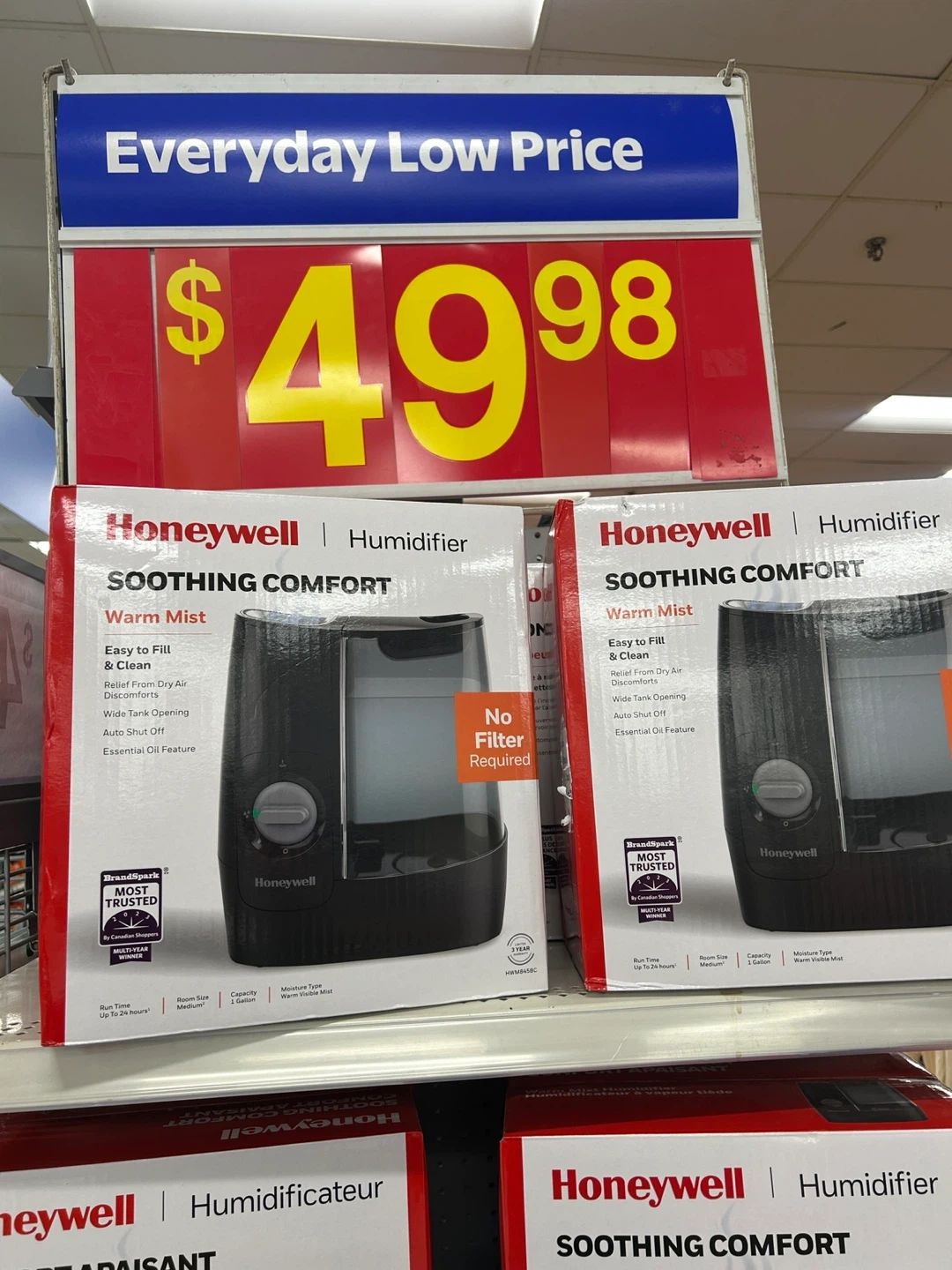 I'm selling a Honeywell humidifier! It's black and in great condition. Perfect for adding moisture to the air in your home, especially during the dry winter months. It's easy to use and helps create a more comfortable environment. The retail price is $49.98+tax.