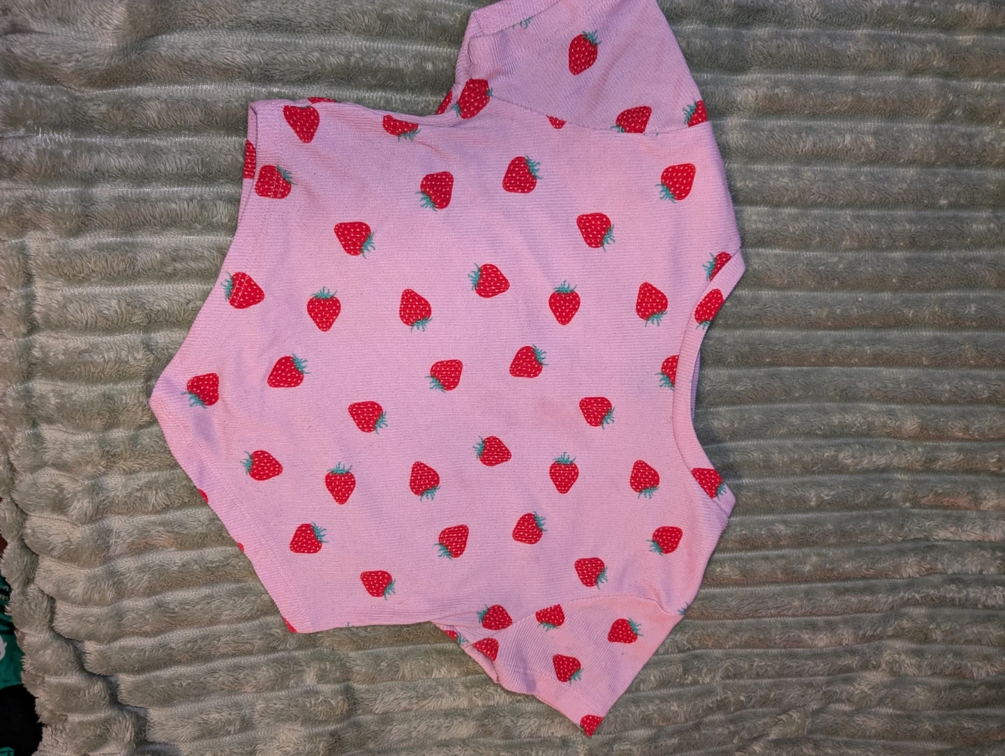 Cute pink croptop with a strawberry print from Streetwear Society! Size medium, form fitting with dynamic shape! Soft ribbed fabric.