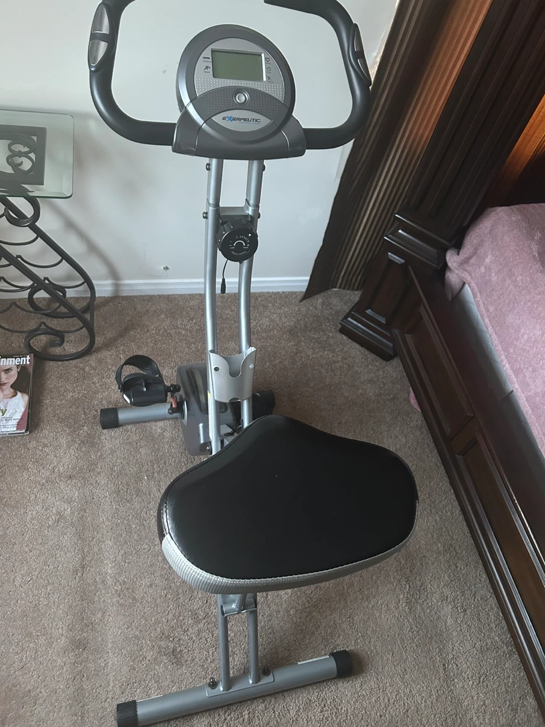 Get fit with this Exerpeutic folding exercise bike! It's in great shape and ready for a new owner. Perfect for small spaces, it folds up easily for storage when not in use. A simple and effective way to get your cardio in at home
