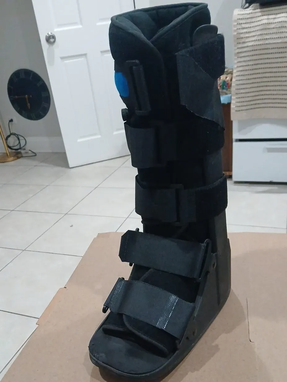 Selling a black medical walking boot. It has adjustable straps for a comfortable and secure fit. Perfect for recovery and support!