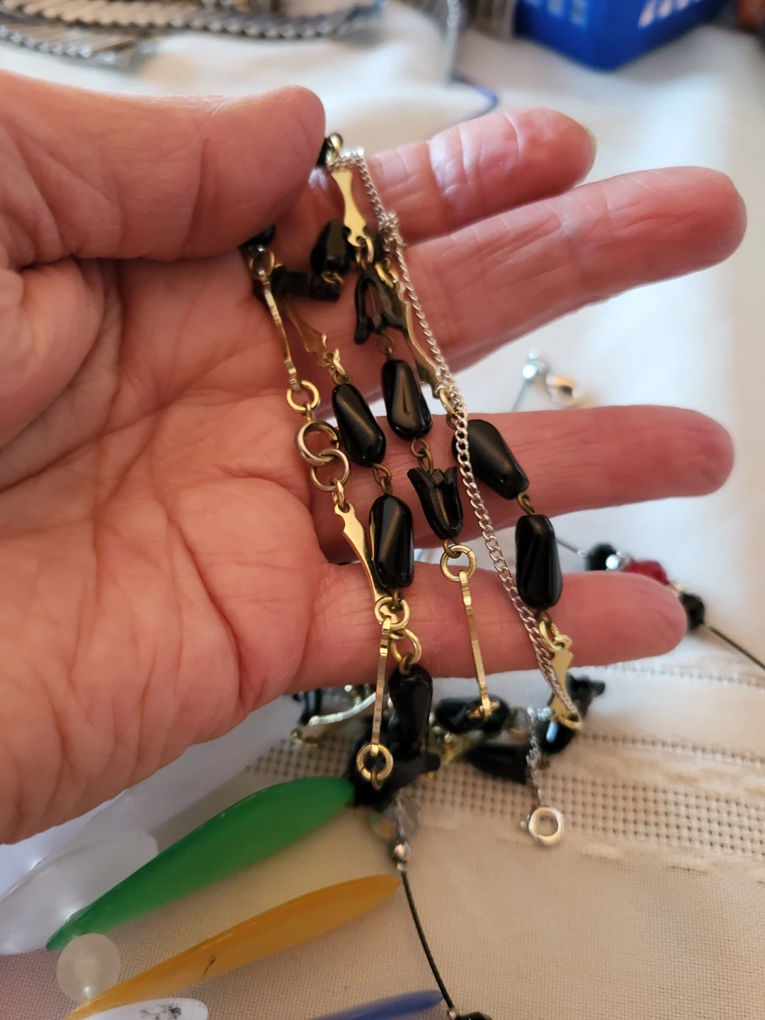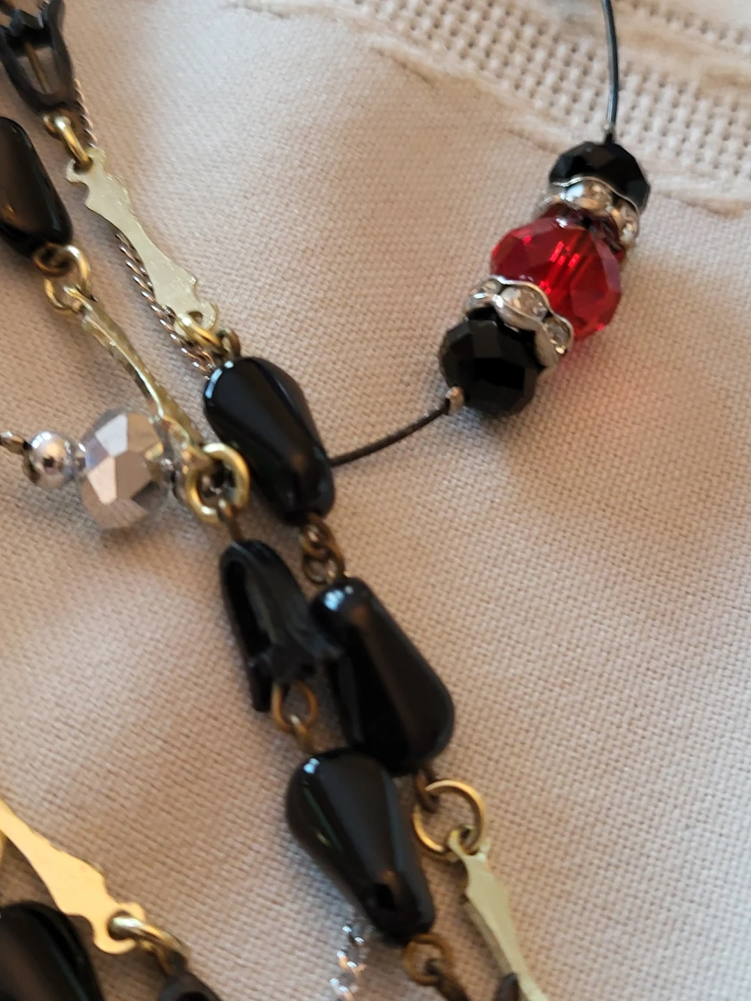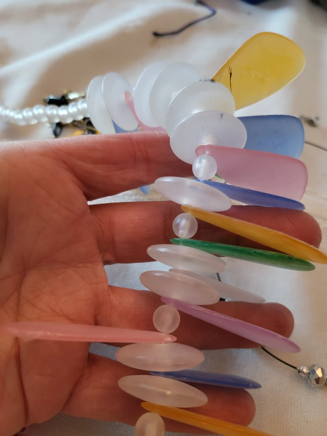 Selling a collection of assorted costume jewellery necklaces. There's a variety of styles, including beaded necklaces with pearls, colourful accents, and unique designs. Perfect for adding some sparkle to your outfits!