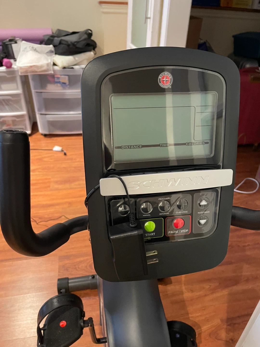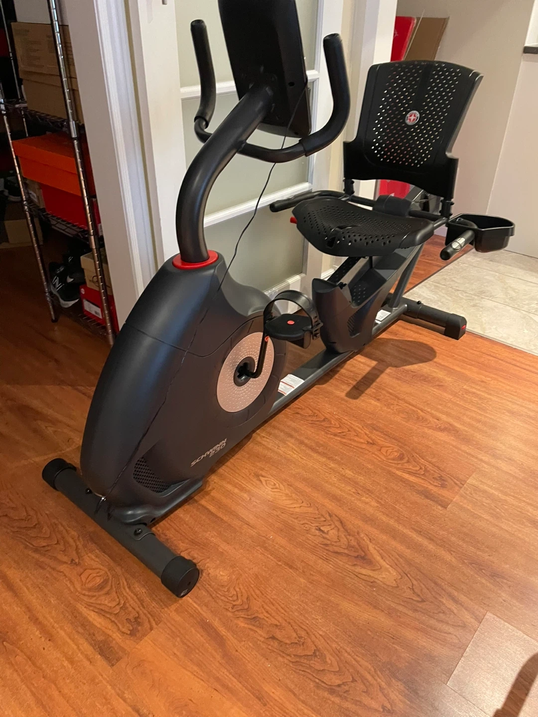Get your cardio in with this Schwinn 230 recumbent exercise bike! It's in great shape and ready for a new workout buddy. The display shows distance, time, and calories burned, so you can track your progress. It also has different programs and resistance levels to challenge yourself.