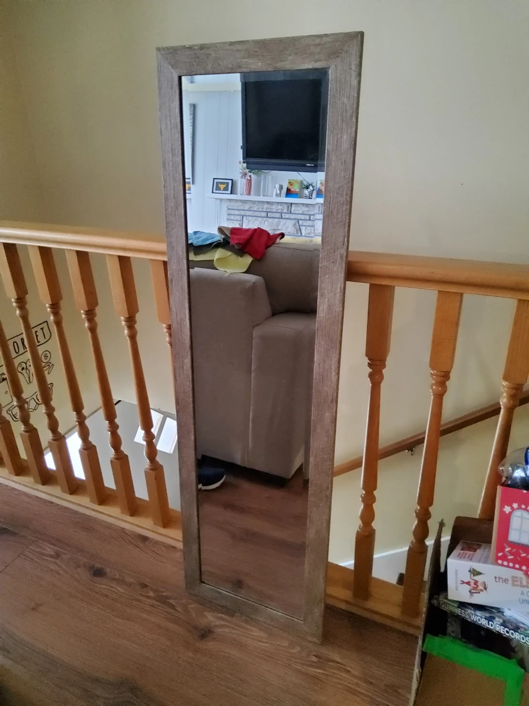Selling a full length mirror with a rustic-style wood frame
