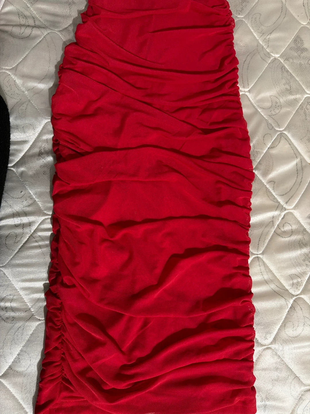 Selling a cute red ruched bodycon mini dress! It's perfect for a night out or a special occasion. The ruching detail is super flattering and the bright red colour is sure to turn heads