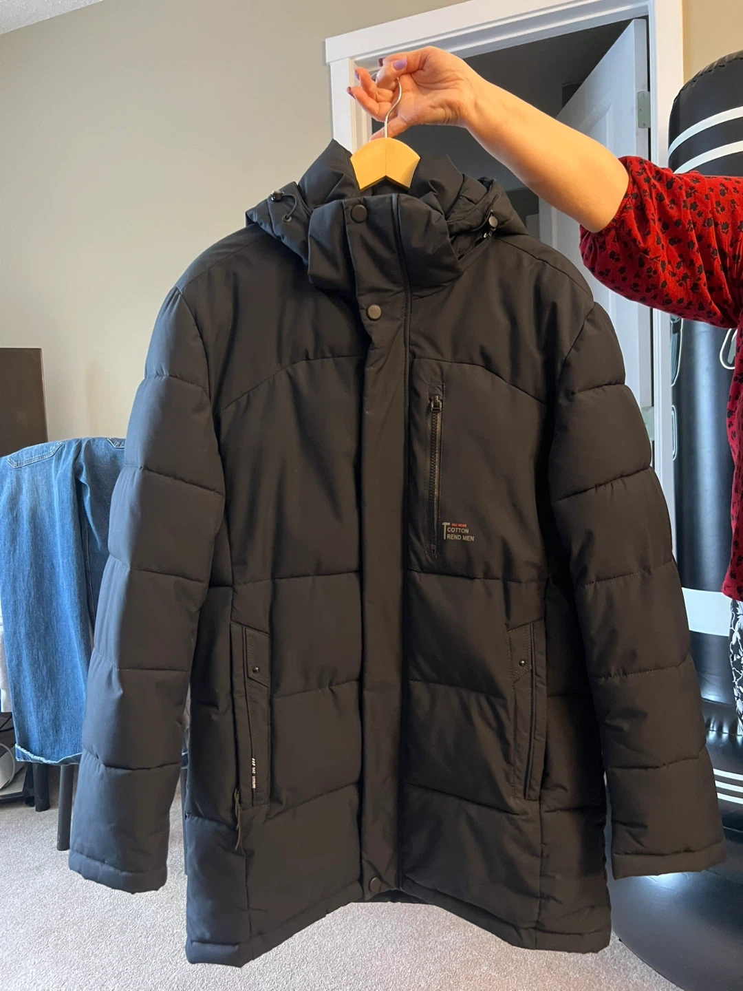 Selling a gently used SBX black puffer jacket. It's in great condition and perfect for the colder weather. The jacket features a stylish design with a comfortable fit. There are handy pockets on the inside.