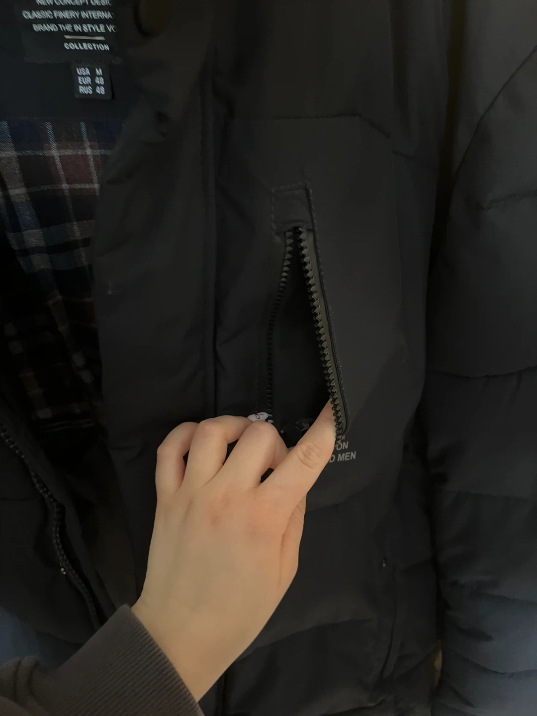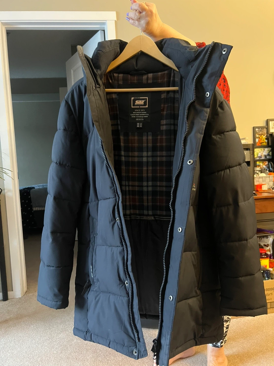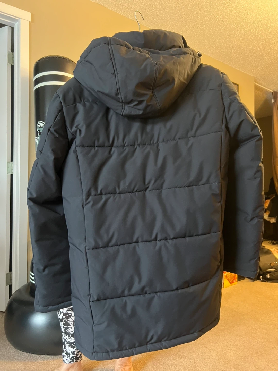 Selling a gently used SBX black puffer jacket. It's in great condition and perfect for the colder weather. The jacket features a stylish design with a comfortable fit. There are handy pockets on the inside.