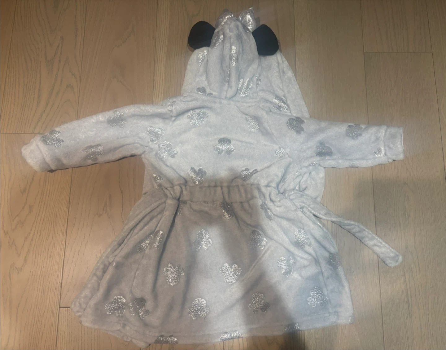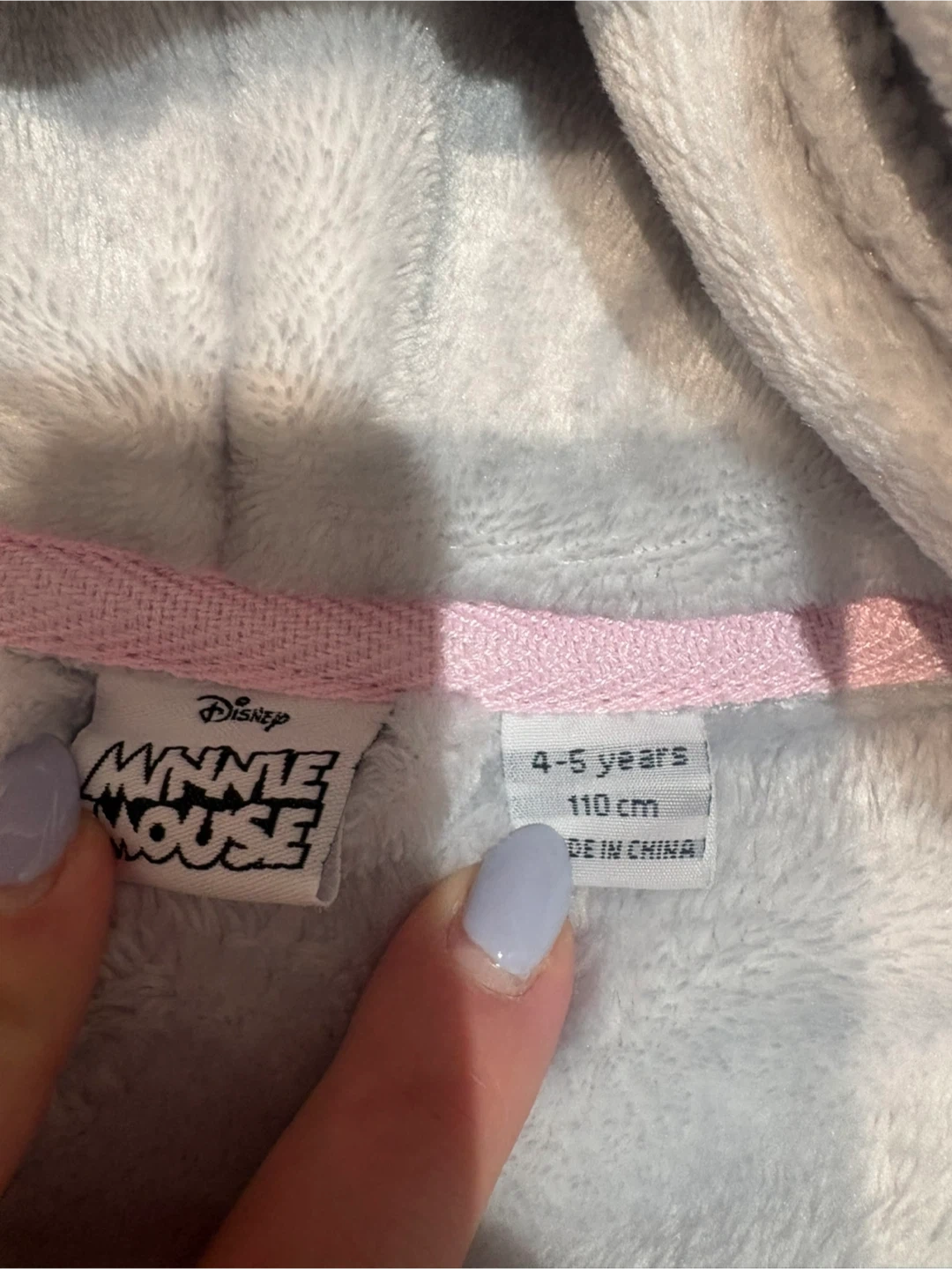 Cozy Disney Minnie Mouse robe for kids aged 4-5 years! This adorable robe is in great condition and features a hood with Minnie's ears and a cute Minnie Mouse design. Perfect for keeping your little one warm after bath time or just lounging around the house.