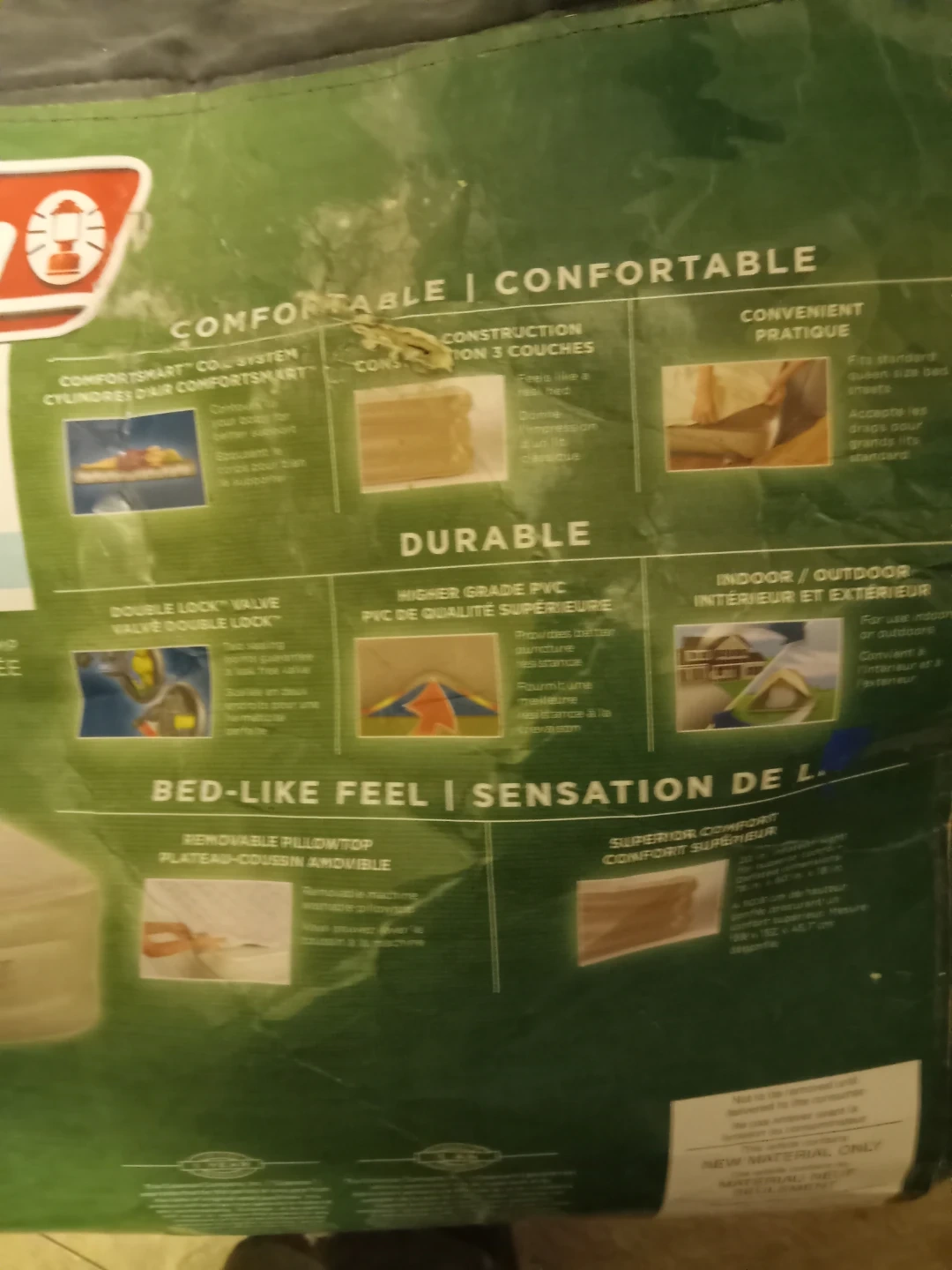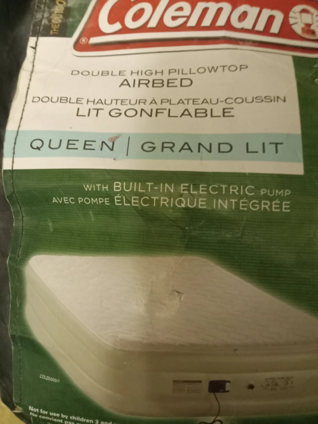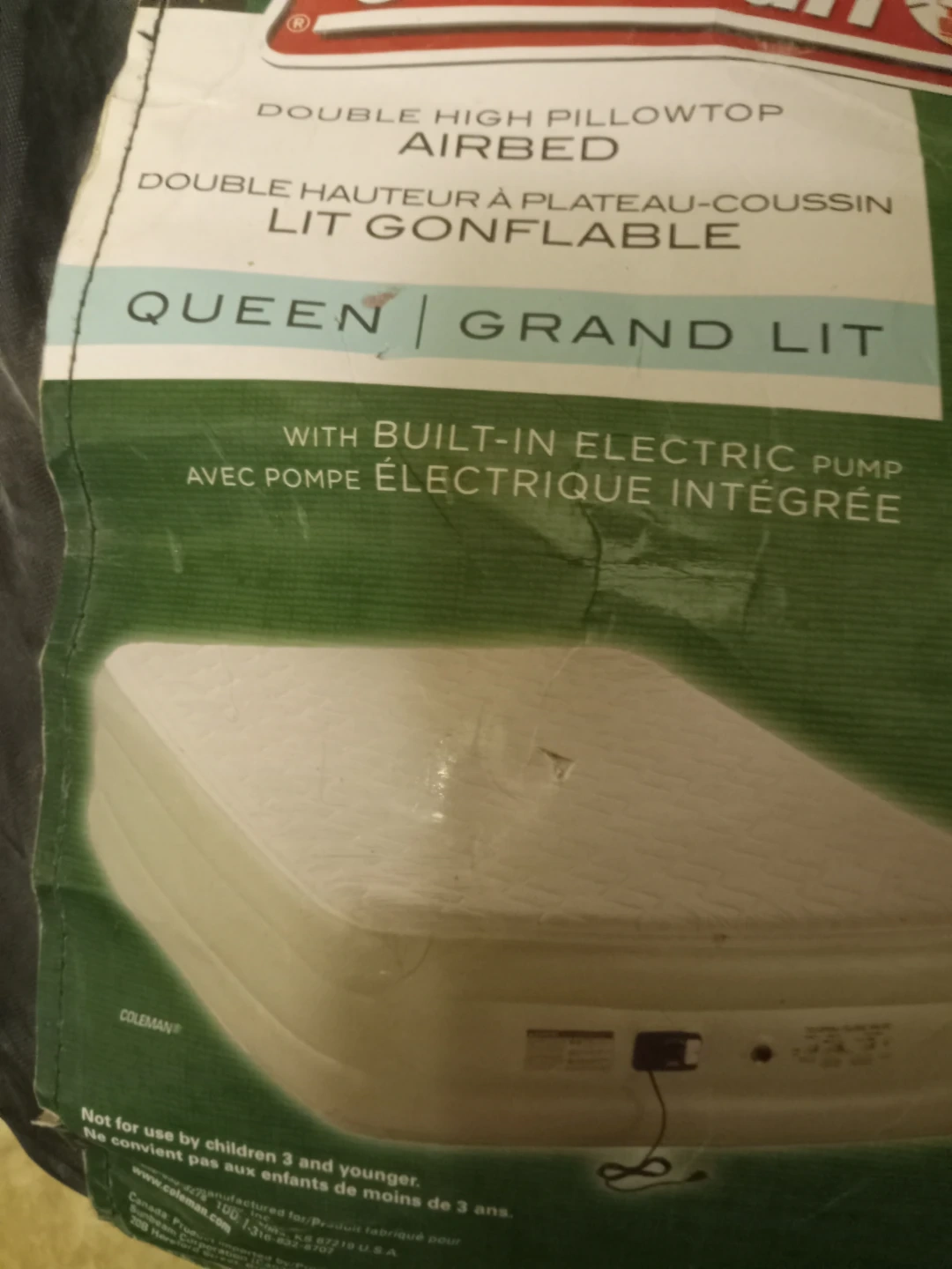 Selling a Coleman queen-sized double-high pillowtop airbed. It features a built-in electric pump for easy inflation. The airbed is made with higher-grade PVC for puncture resistance, and it's suitable for both indoor and outdoor use. It feels like a real bed and fits standard queen-size bed sheets