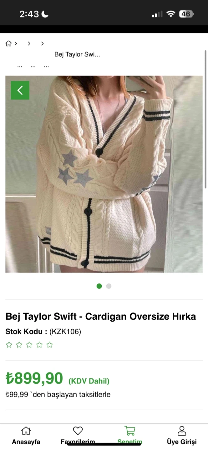 Selling a cozy Taylor Swift cardigan in an oversized fit! It's a cream colour with cute star details. Perfect for any Swiftie looking to stay warm and stylish brand is köstebek.