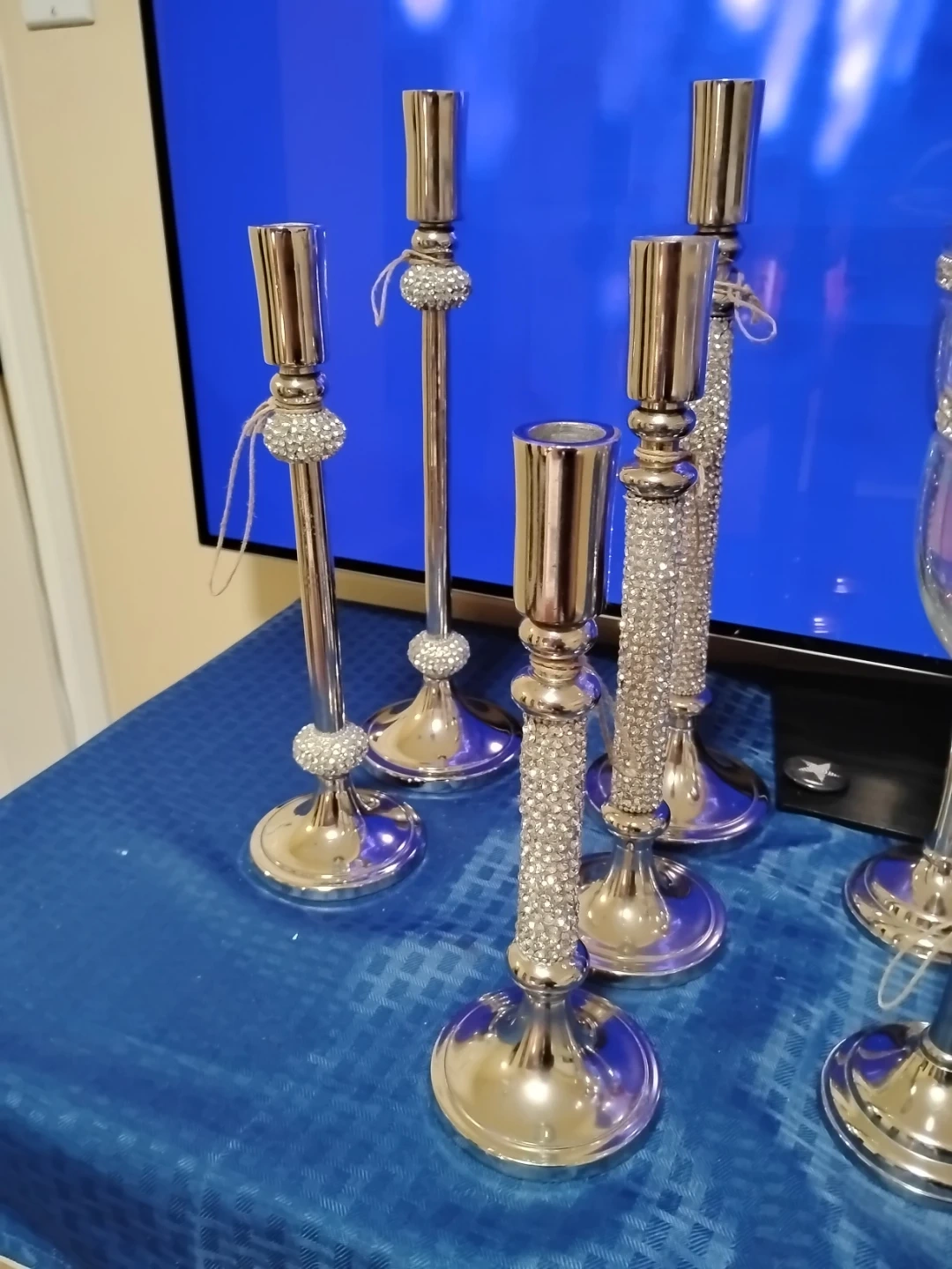 Styled and Plated (Silver and Chrystal) Private Offering: Exquisite Swarovski Silver-Plated Crystal Candle Ensemble