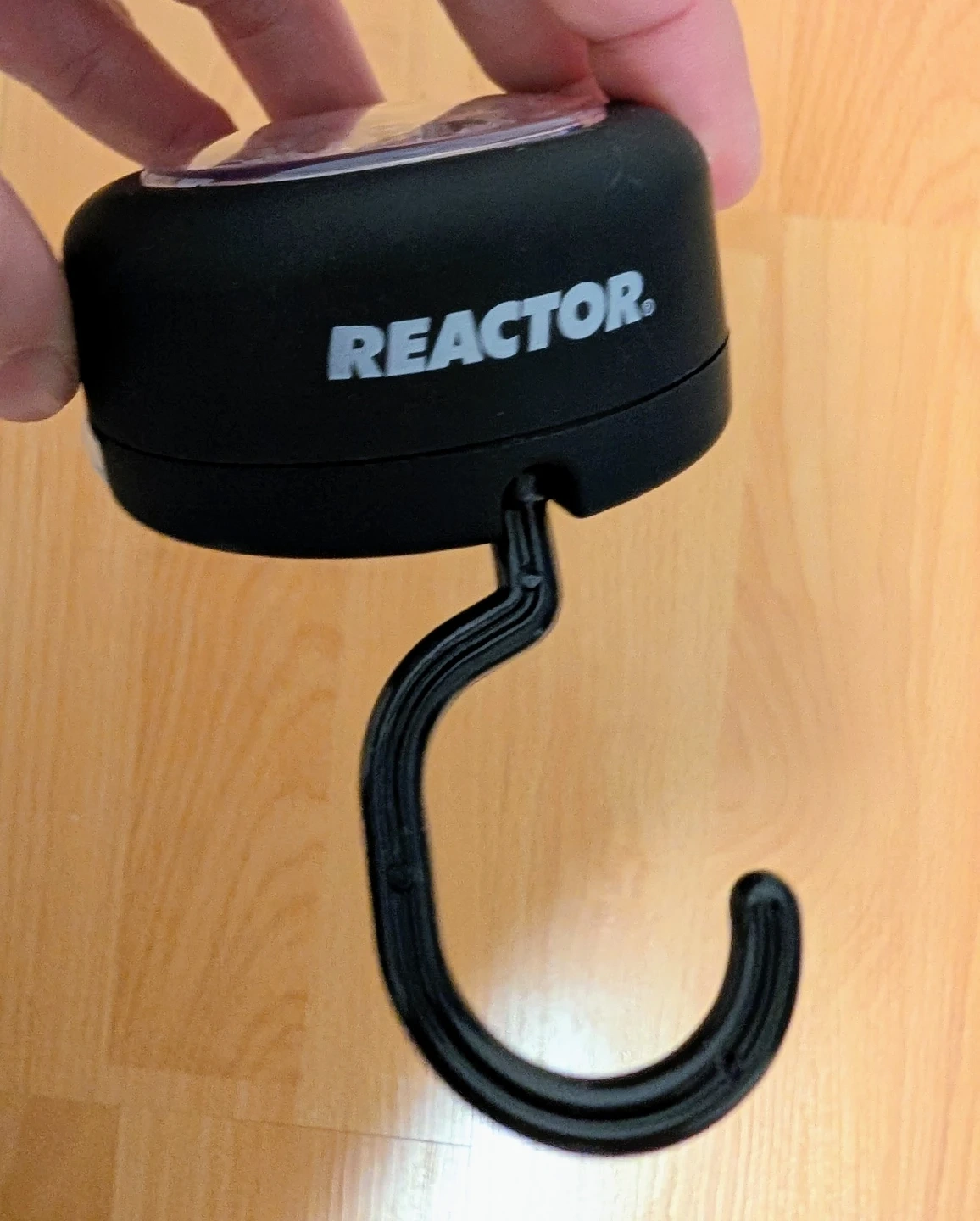 Check out this Reactor LED hook light! It's black and has a handy hook for hanging. Perfect for camping, emergencies, or just keeping in your car. It's lightweight and portable, making it easy to bring along wherever you go