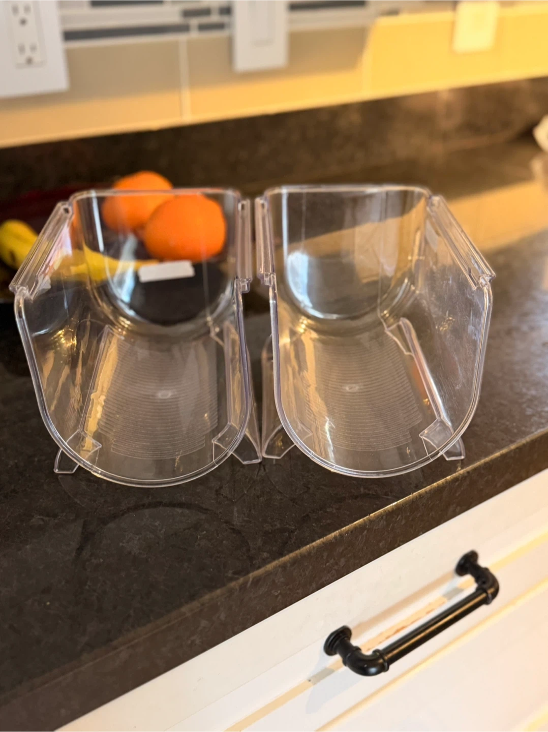 This is a clear wine bottle holder for your fridge. It's in great condition and ready to keep your bottles organized $12 for both of them I paid $10 for each