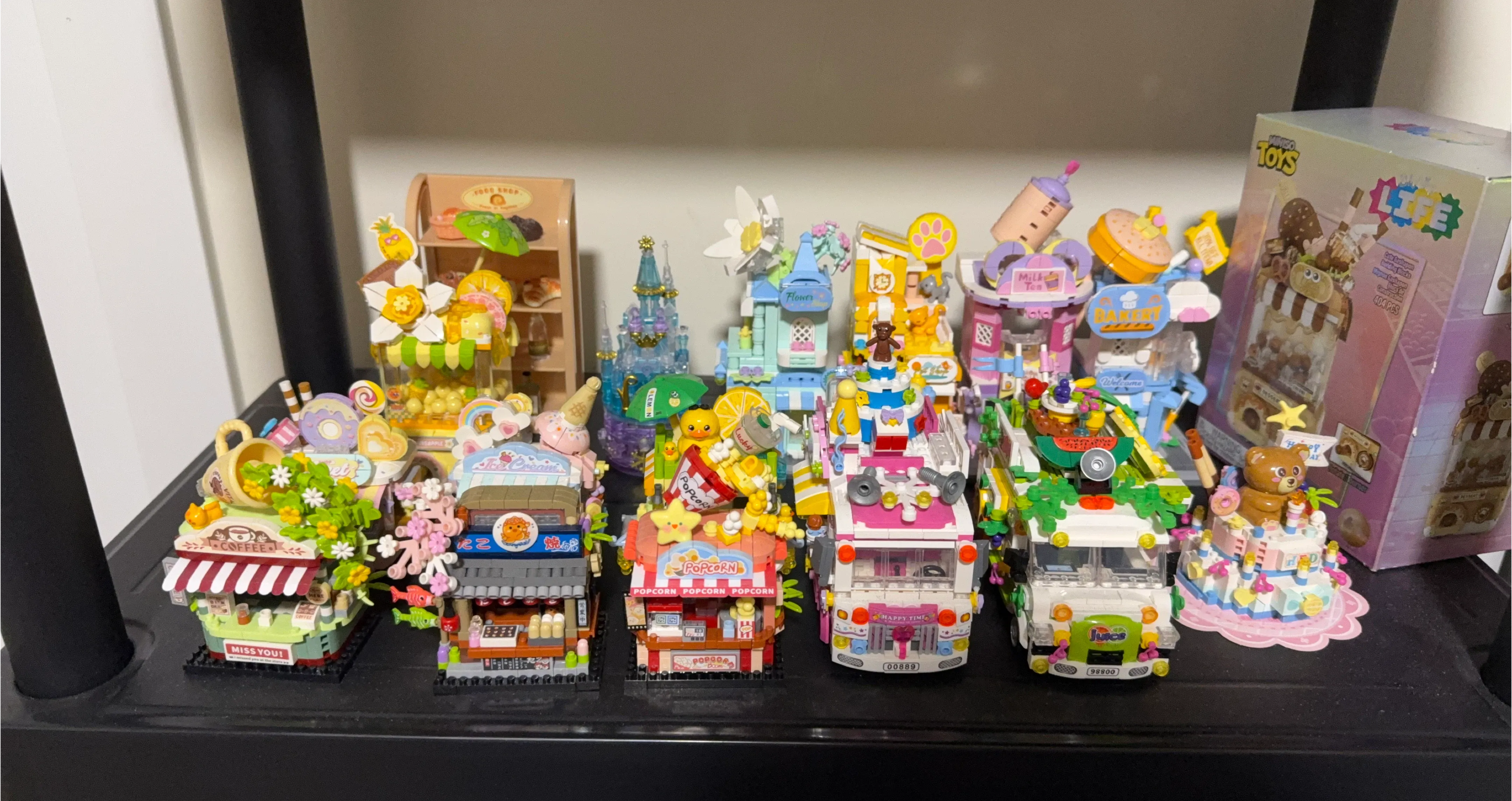 I have a variety of Miniso Toys building block sets available! Each set is a cute little shop or vehicle design. They're perfect for anyone who enjoys building and collecting adorable miniatures