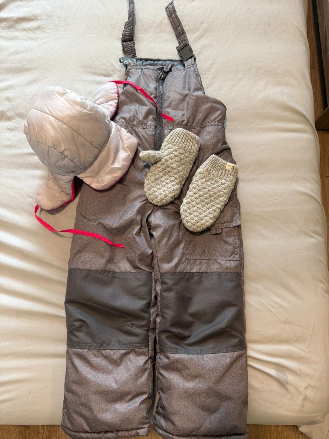 Selling a gently used kids' snowsuit, perfect for keeping your little one warm this winter! It comes with a matching hat and mittens. The snowsuit is in great condition and ready for some snowy adventures.
