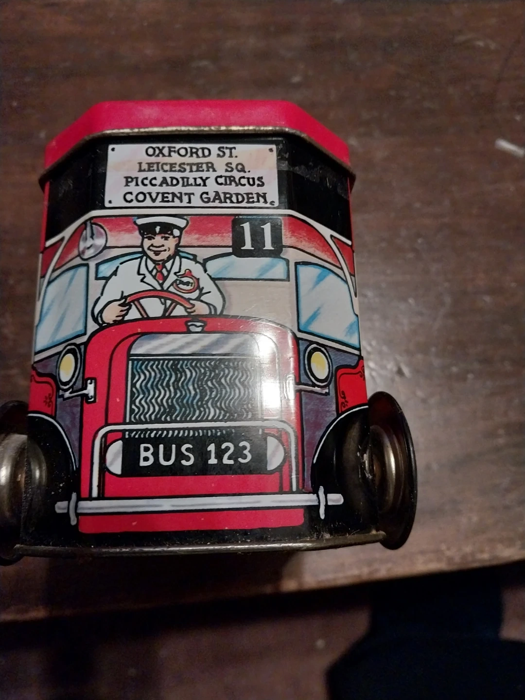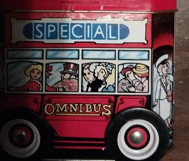 Selling a vintage Cravens of York London Bus tin. It once contained English Fruit Candy. The tin is decorated with colorful London scenes and has wheels. Great for collectors or as a decorative piece