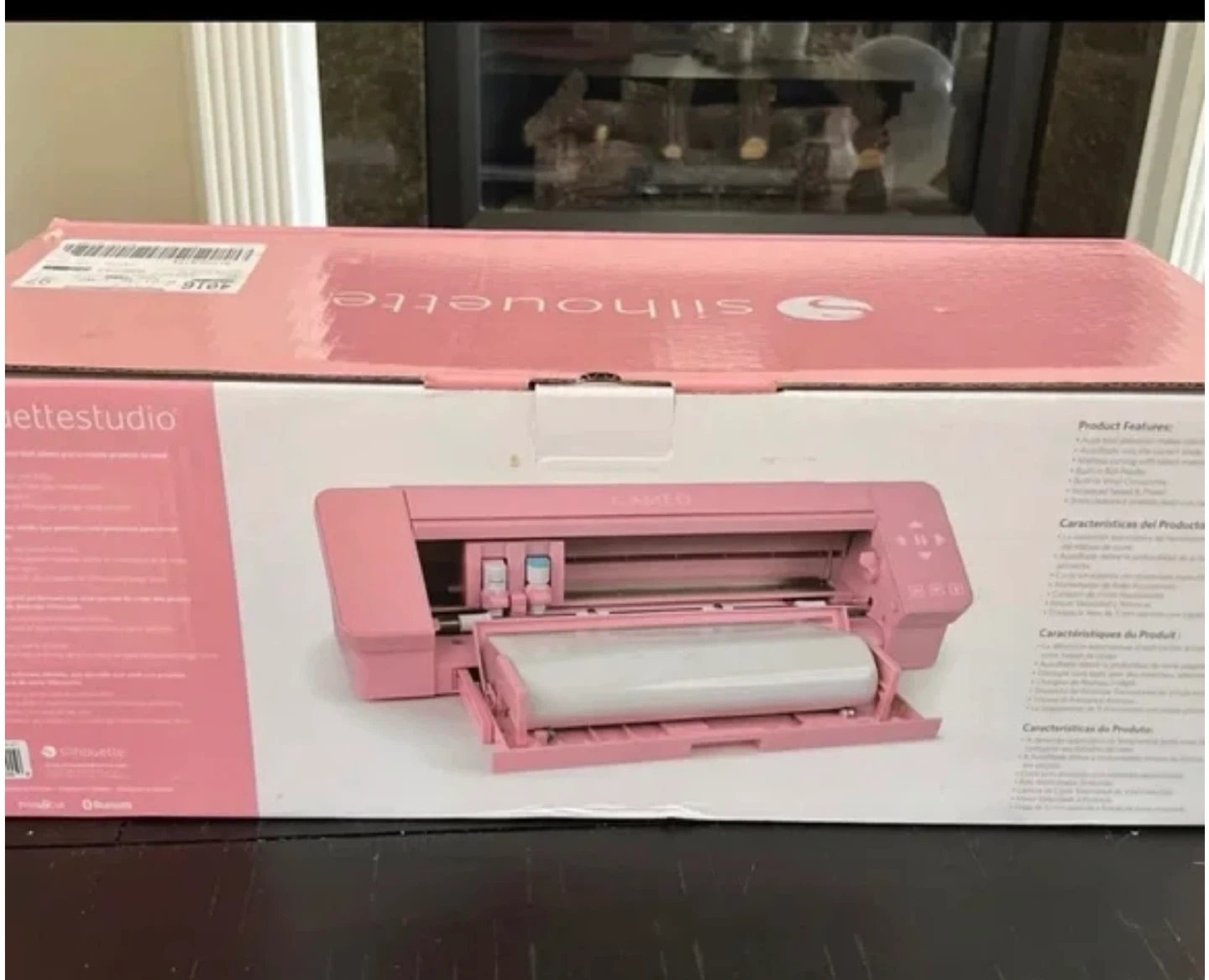 Selling a pink Silhouette Cameo 4! It's in good condition and comes with the original box and all included components. Perfect for your crafting needs!