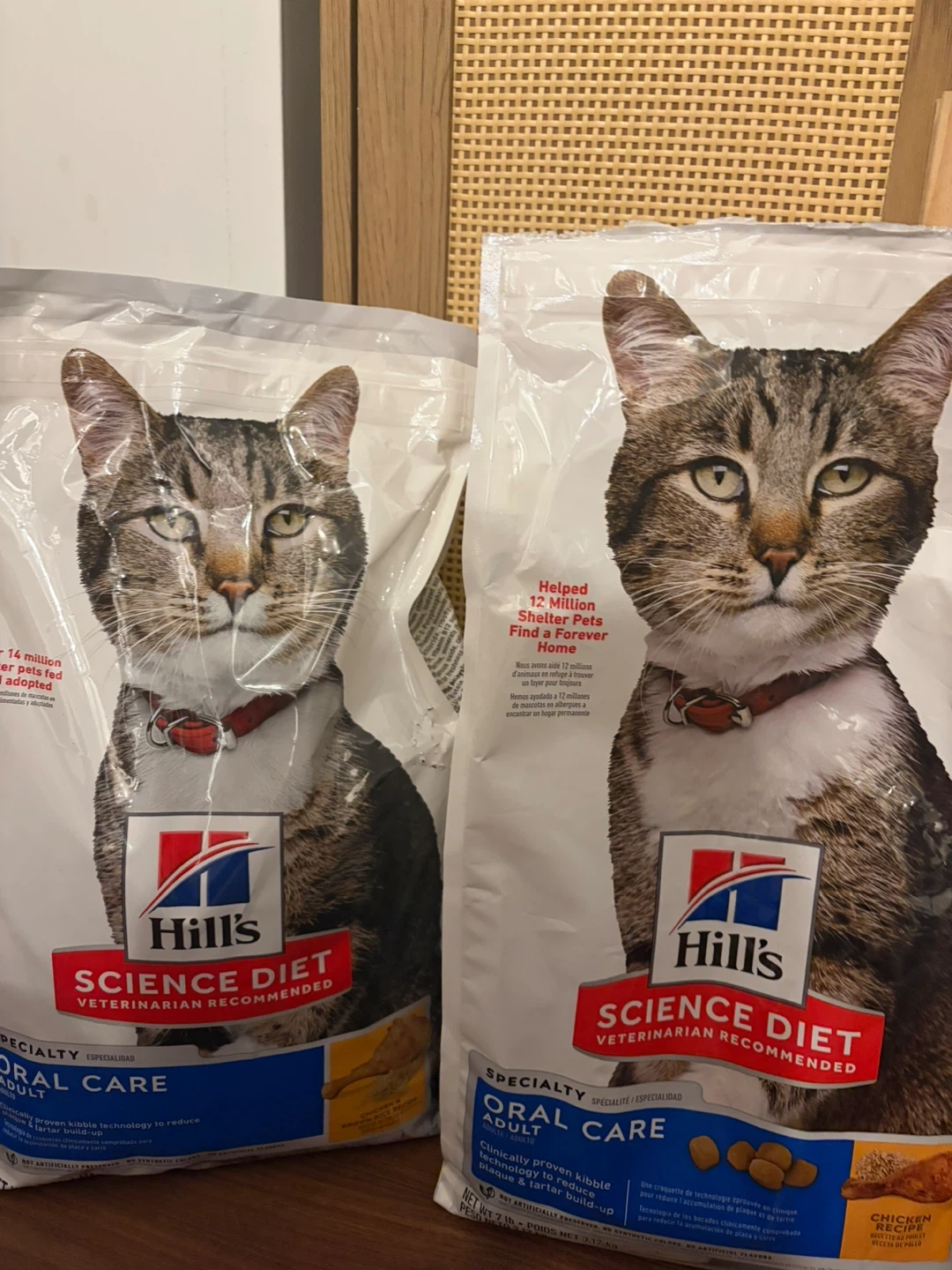 Selling Hill's Science Diet Adult Oral Care cat food 3.17kg+. It's veterinarian recommended and helps reduce plaque and tartar buildup. One is new but my cat did leave a bite mark😿 I’m giving the other bag with some left over food with it for free. OG price: $74